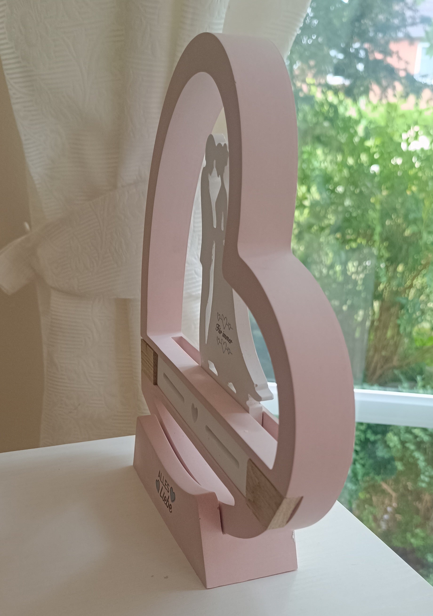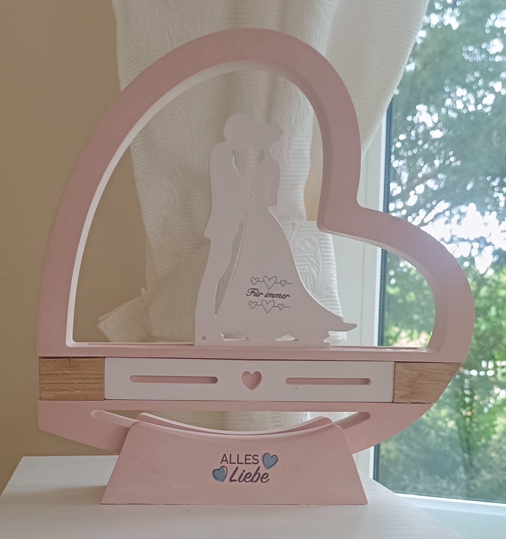 Das Dekoherz „Pärchen“ ist ein elegantes Schmuckstück, das sich ideal als Geschenk zur Verlobung, zum Jahrestag oder anderen besonderen Anlässen eignet. Mit seinem stabilen Standfuß lässt es sich dekorativ platzieren und verleiht jedem Raum eine romantische Atmosphäre. Die filigrane Gestaltung symbolisiert Liebe und Verbundenheit – perfekt, um bedeutungsvolle Momente stilvoll zu feiern.