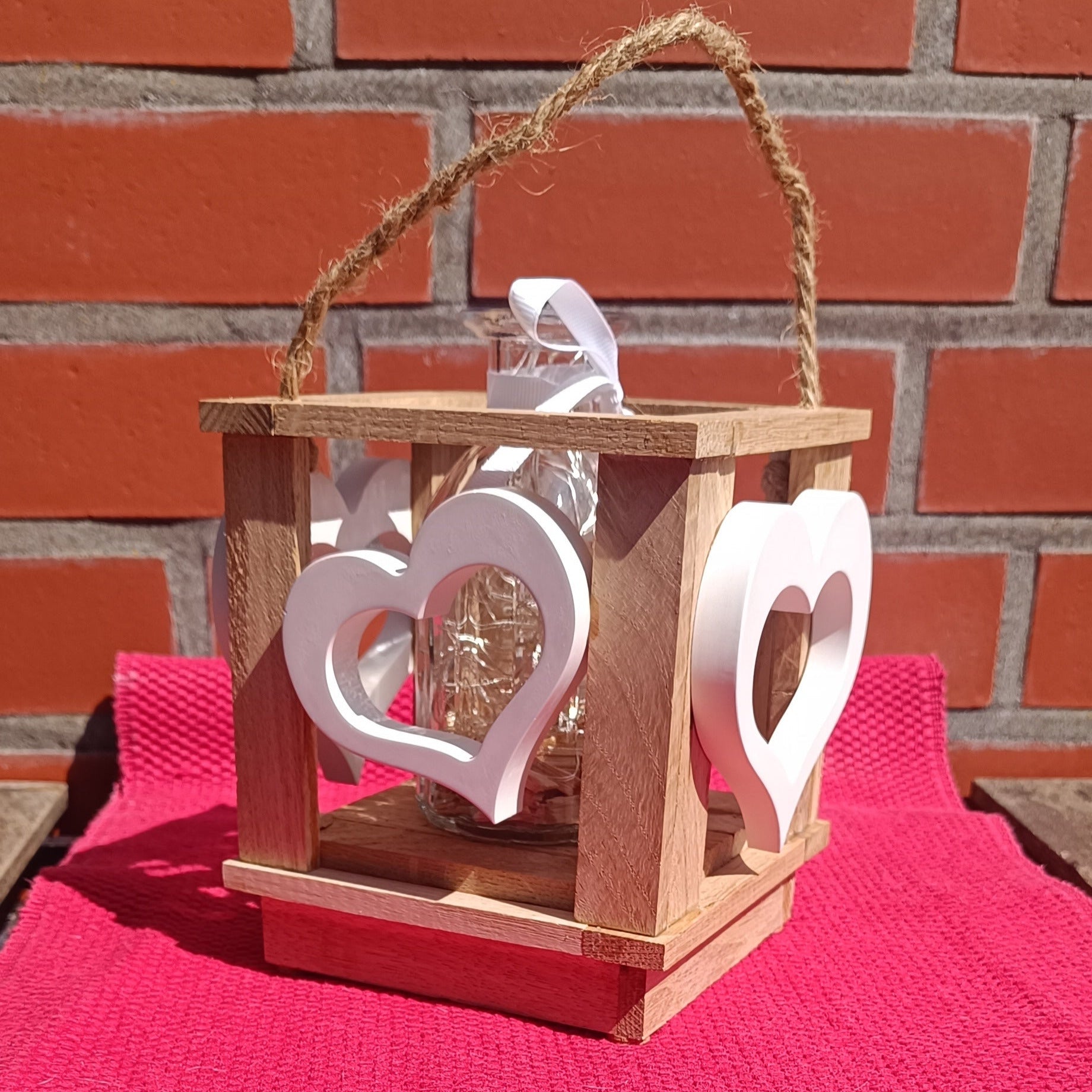 Die Dekoleuchte „Herzlicht“ vereint natürliches Echtholz mit einem funkelnden Glasbehälter und zaubert mit sanfter LED-Beleuchtung ein warmes Herzlicht in dein Zuhause. Perfekt, um spielerisch für gemütliche Stimmung zu sorgen und liebevolle Akzente zu setzen!