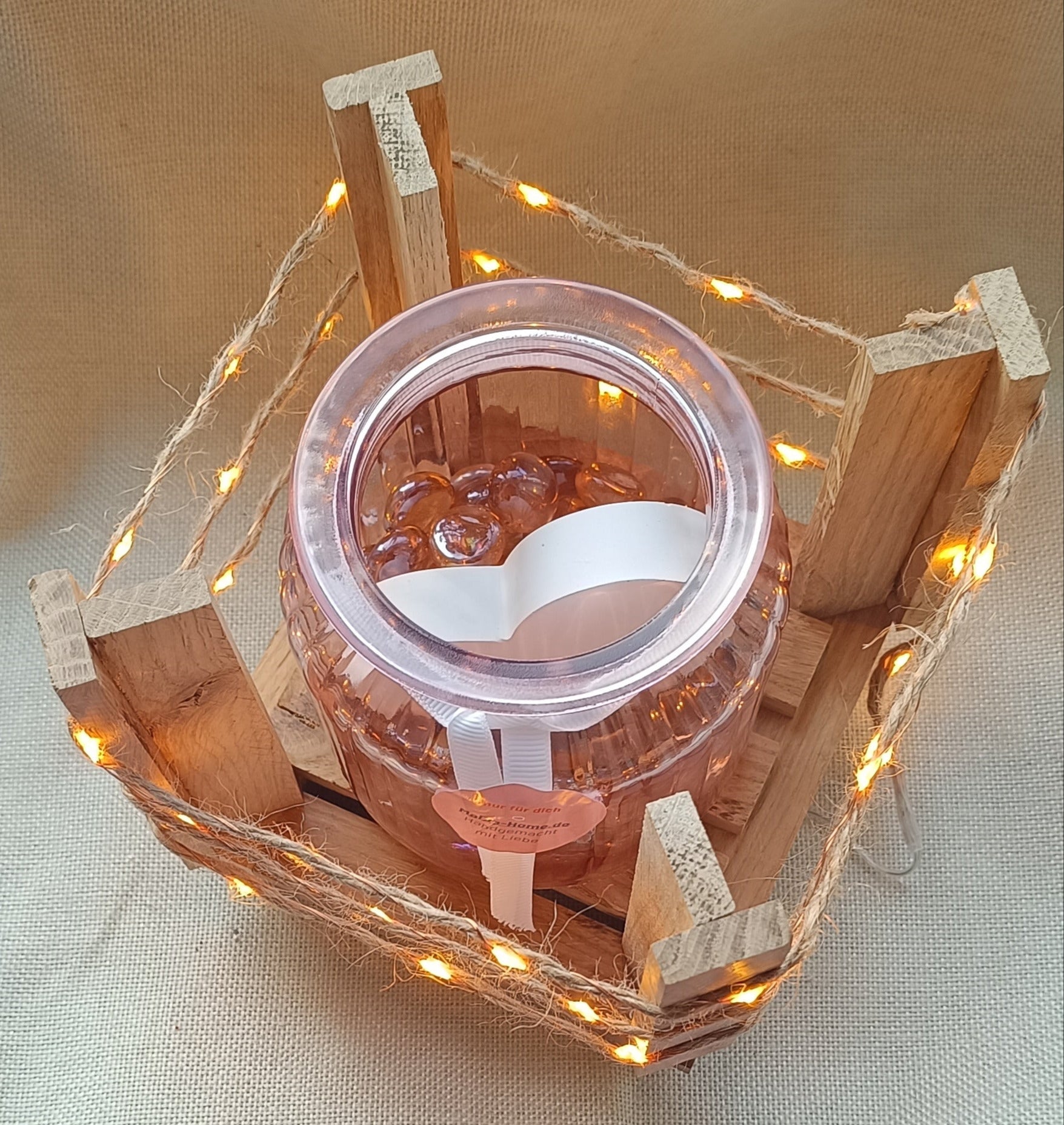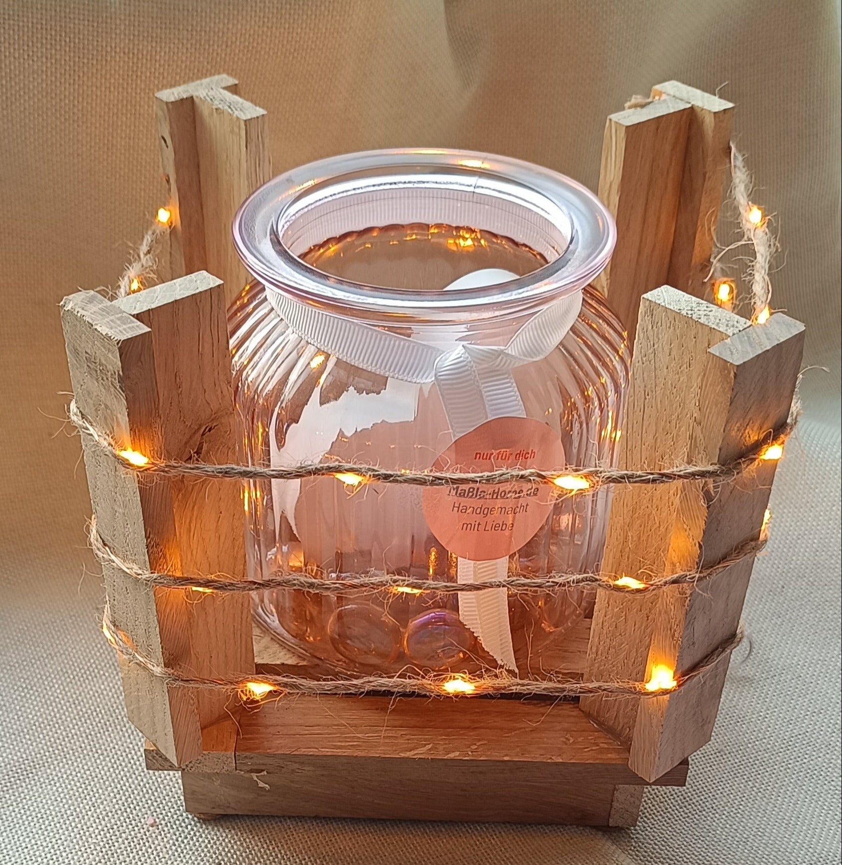 Die Dekoleuchte „Lichtring“ verzaubert mit einem Herz in edlen Dekosteinen, das in einem Glas liegt und von einer sanft leuchtenden LED-Kordel umrahmt wird. Dieses verspielte Lichtobjekt bringt gemütliche Stimmung und funkelnde Akzente in jeden Raum – perfekt, um Liebe und Licht stilvoll zu inszenieren.