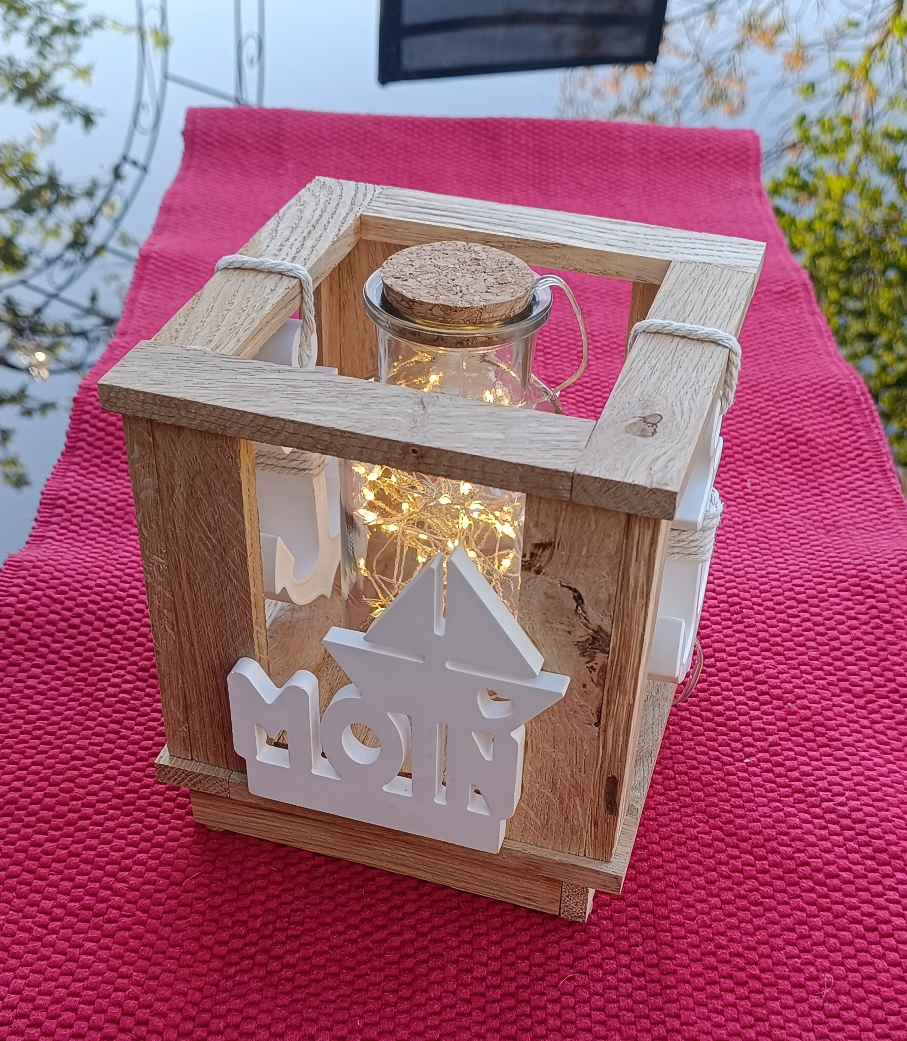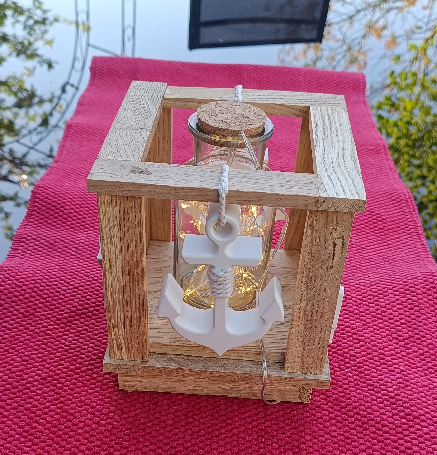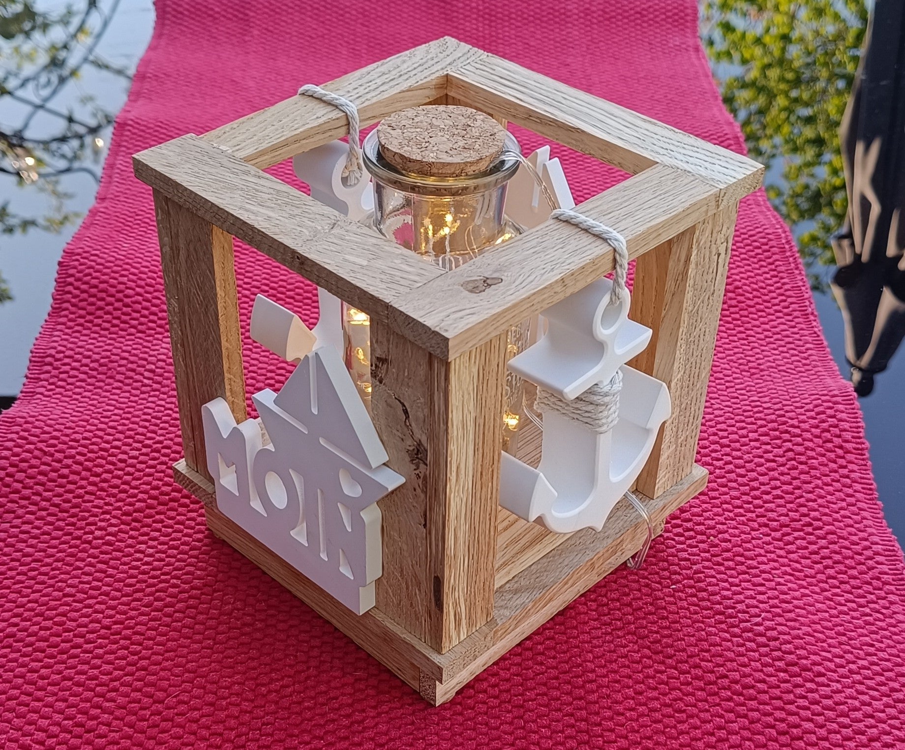 Verschönern Sie Ihr Zuhause mit der handgefertigten Dekoleuchte aus Holz mit dem trendigen Schriftzug "Moin" und einem Anker auf jeder Seite. Mit der mitgelieferten LED-Lichterkette im Glasgefäss sorgt die Leuchte für eine angenehme und stimmungsvolle Atmosphäre. Perfekt für jeden Küsten-Liebhaber!