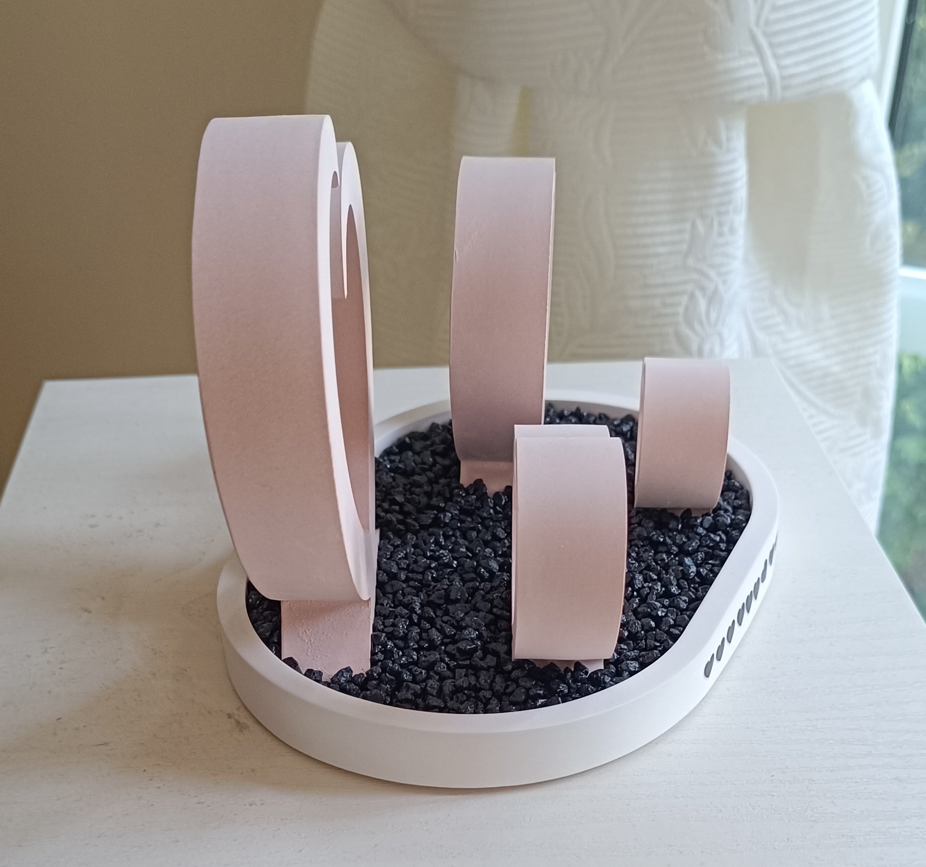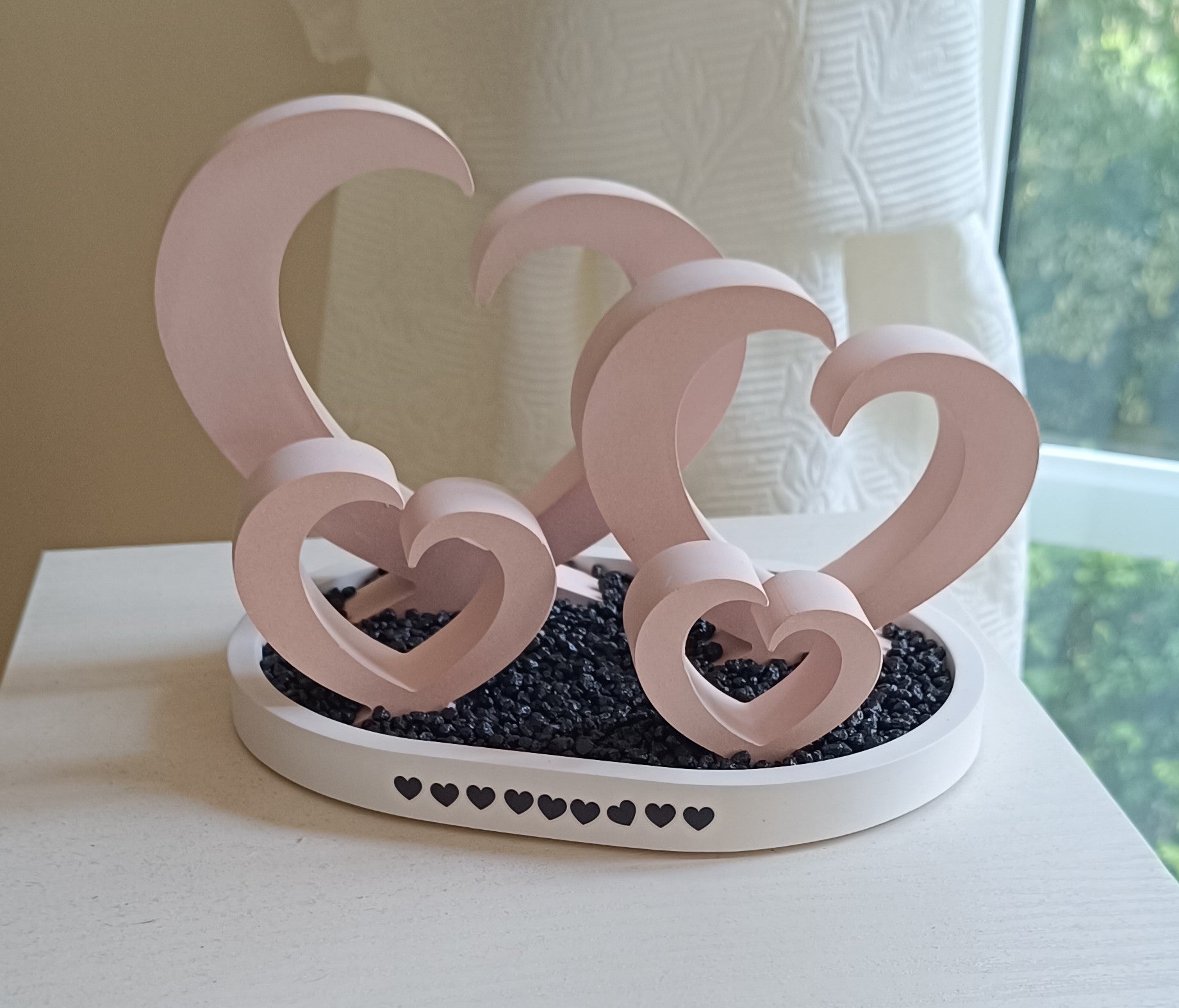Diese Dekoschale „Herzen in Schwarz“ vereint vier liebevoll geformte Herzen, die auf einem schwarzen Granulatbett ruhen. Ein verspieltes Highlight für jeden Raum, das mit seinem besonderen Design Wärme und Charme verbreitet. Perfekt, um kleine Schätze stilvoll zu präsentieren oder einfach als dekorativer Blickfang zu dienen.