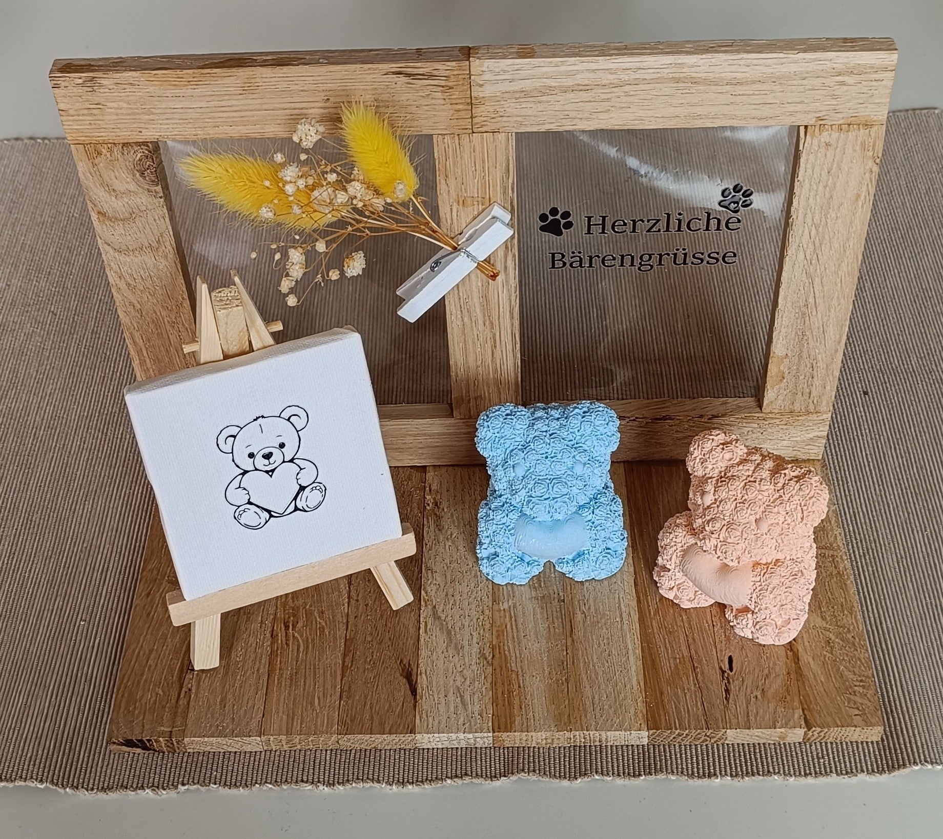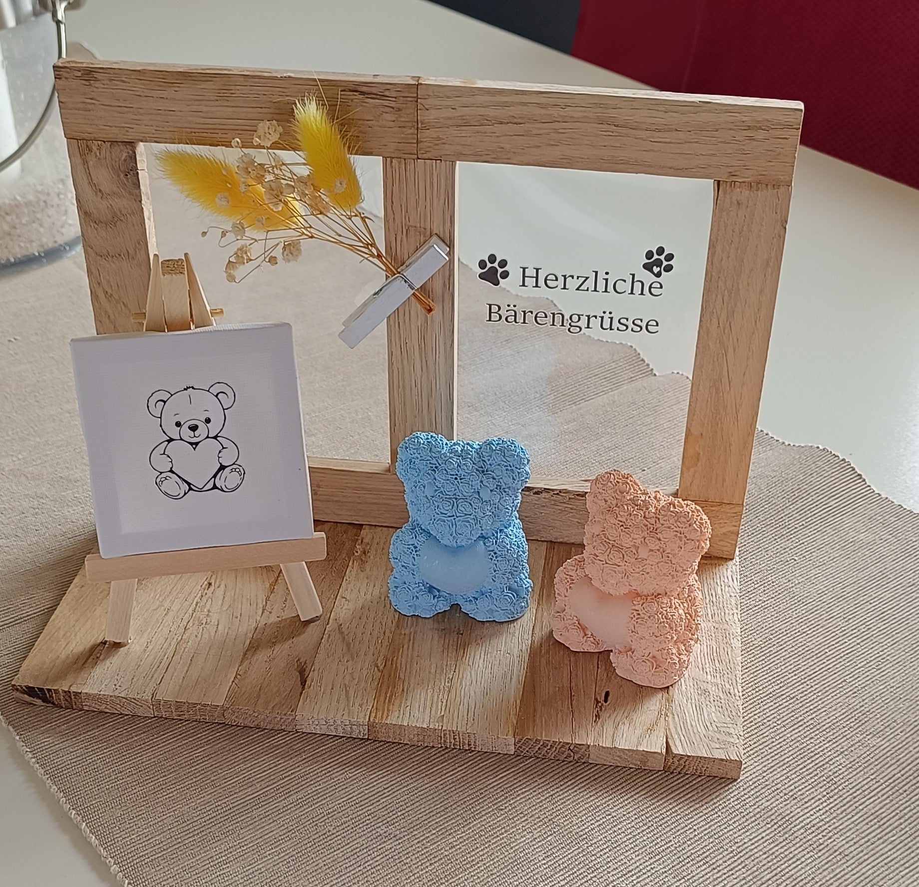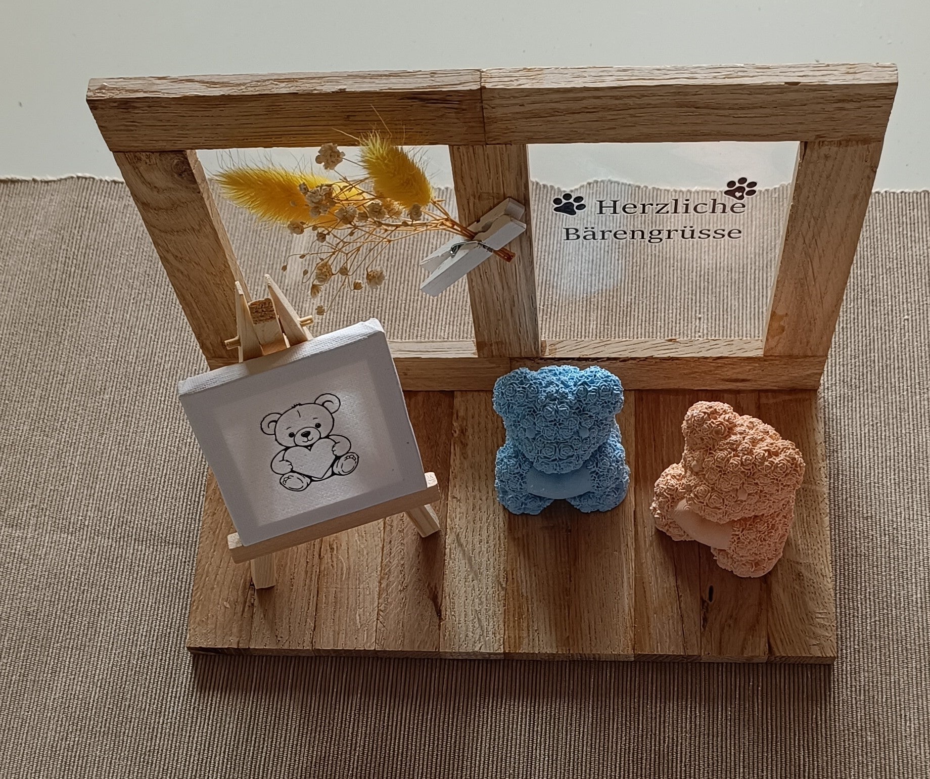 Dieses charmante Dekotablett „Bärengrüsse“ bringt mit seiner liebevollen Darstellung von zwei Bärchen vor einem Fenster eine warme und einladende Atmosphäre in Ihr Zuhause. Ideal, um kleine Schätze stilvoll zu präsentieren oder als dekoratives Highlight auf Ihrem Tisch. Verleihen Sie Ihren Räumen mit diesem detailreichen Accessoire einen Hauch von Gemütlichkeit.