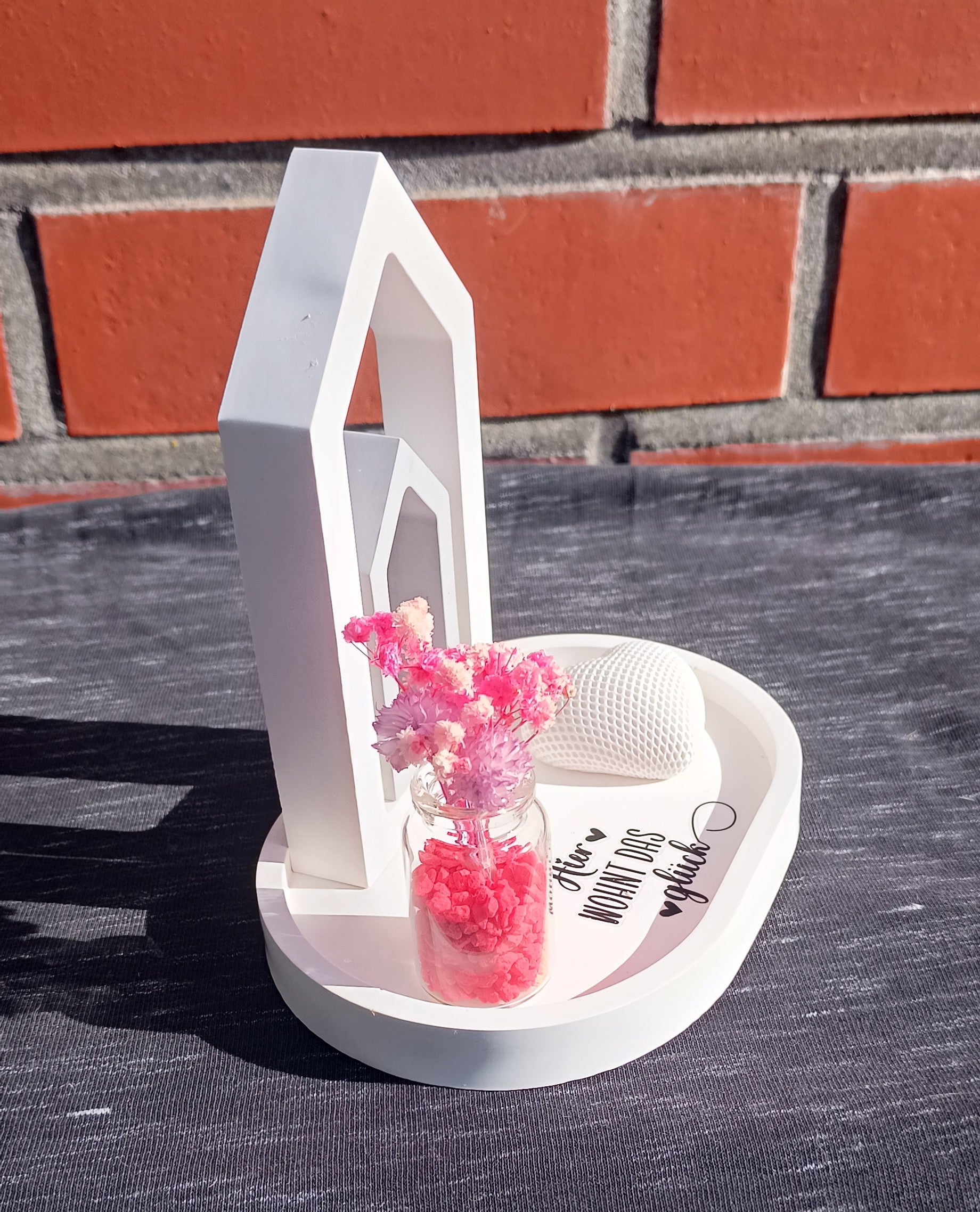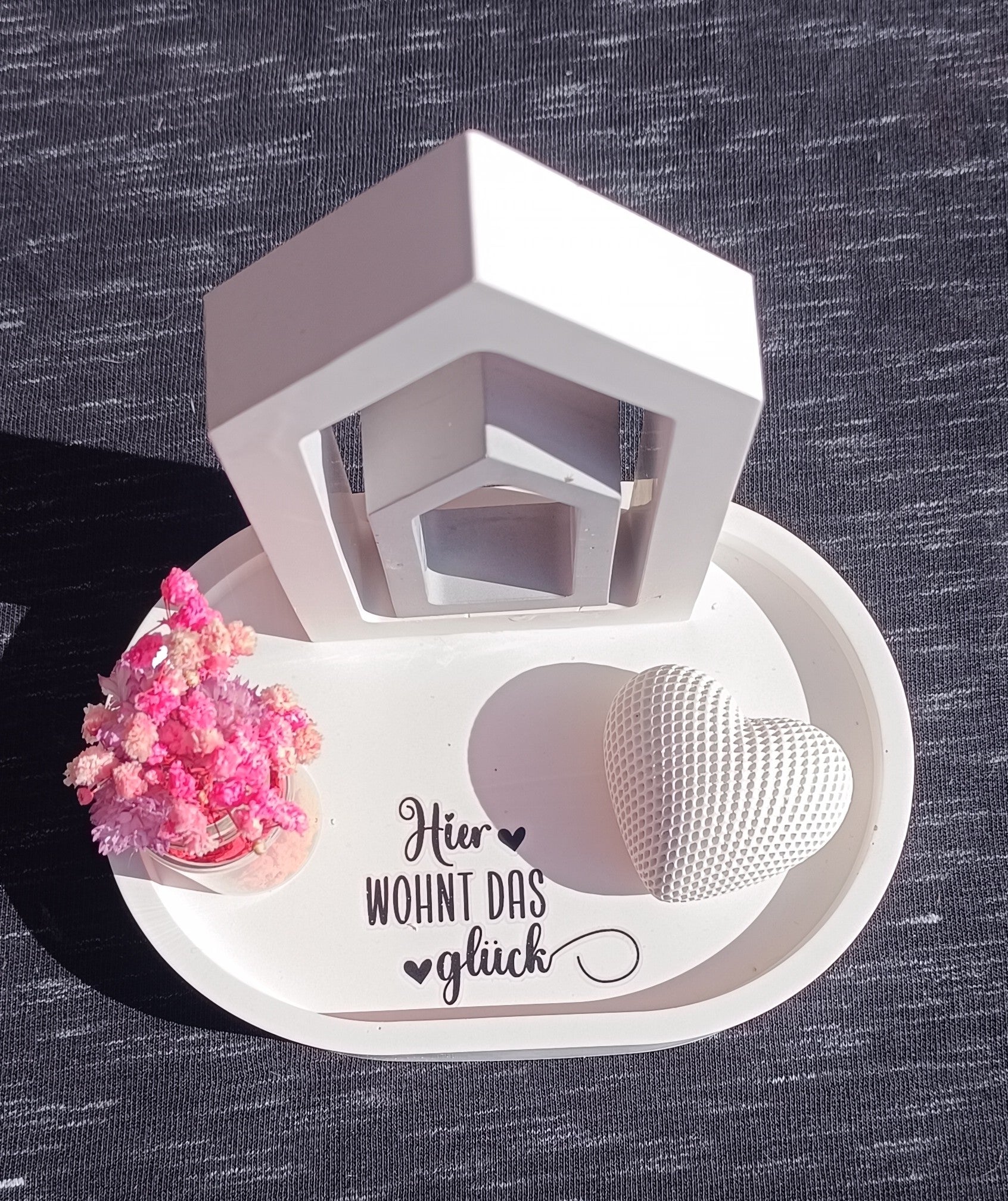Tanz mit dem Dekotablett "Glücksherz" in eine Welt voller Freude! Aus feinstem Keramikguss gefertigte Objekte überraschen mit verspielten grau/weissen Häuschen-Details und einem kleinen Blumenstrauss die zum Schmunzeln einladen. Ob als quirlige Unterlage oder als fröhlicher Hingucker – dieses Tablett versprüht gute Laune in jedem Winkel deines Zuhauses!