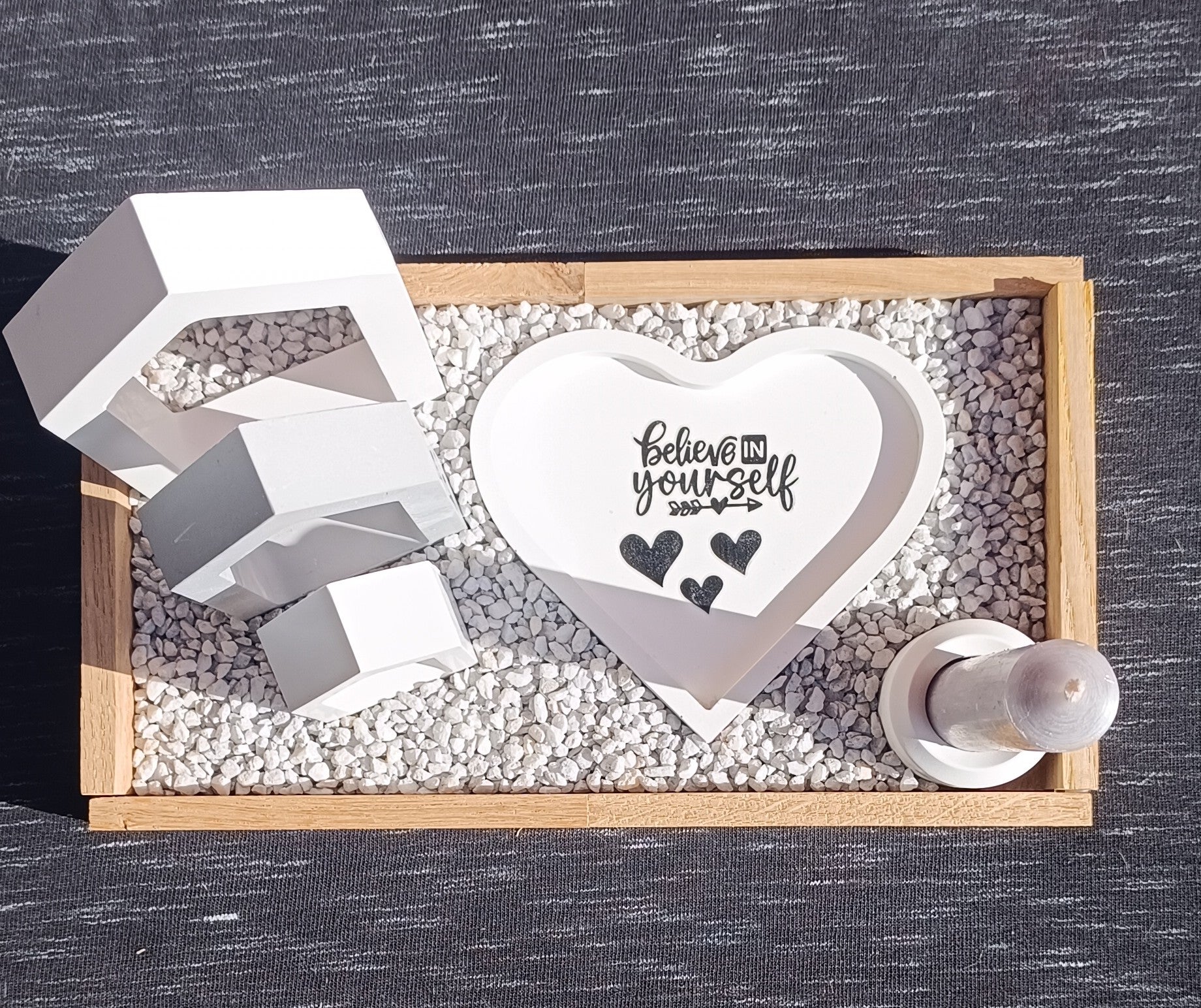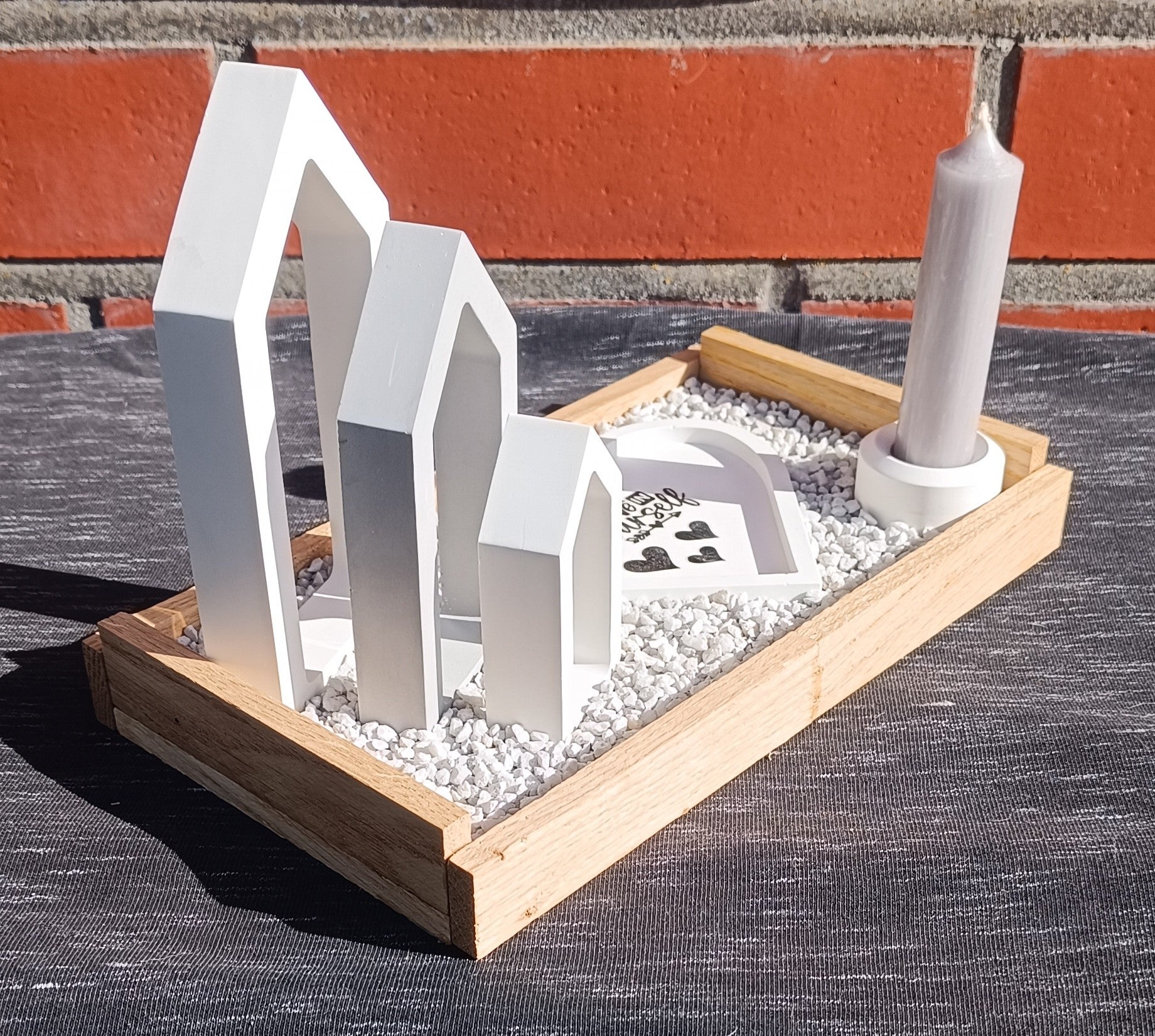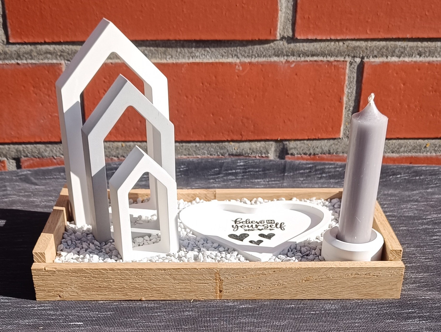 Entdecken Sie unser verspieltes Dekotablett "Herzhäuser" – eine charmante Komposition aus natürlichem Holz, dekorativem Granulat und niedlichen Keramikhäuschen in Grau und Weiss. Mit der kleinen Schale in Herzform und einem Kerzenständer mit enthaltener Kerze zaubern Sie im Handumdrehen eine gemütliche Atmosphäre, die Ihr Zuhause mit warmem Licht und Persönlichkeit erfüllt. Ein kleines Wohlfühl-Dorf für Ihre Lieblingsecke!