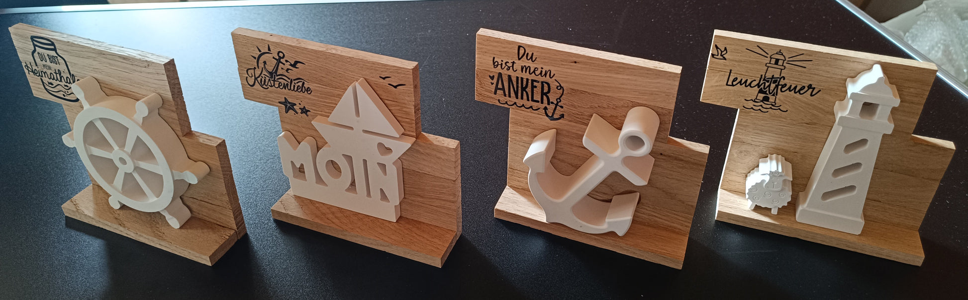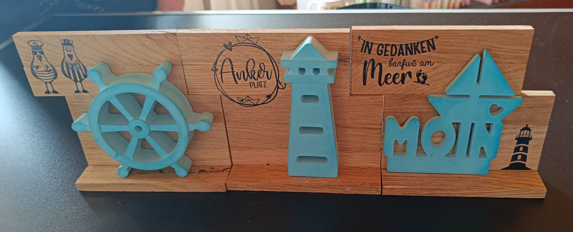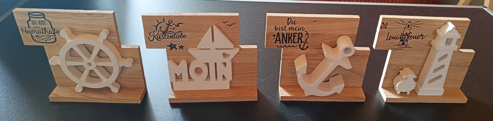 Kombinierbare Holzelemente mit Maritimen Keramikguss-Motiven