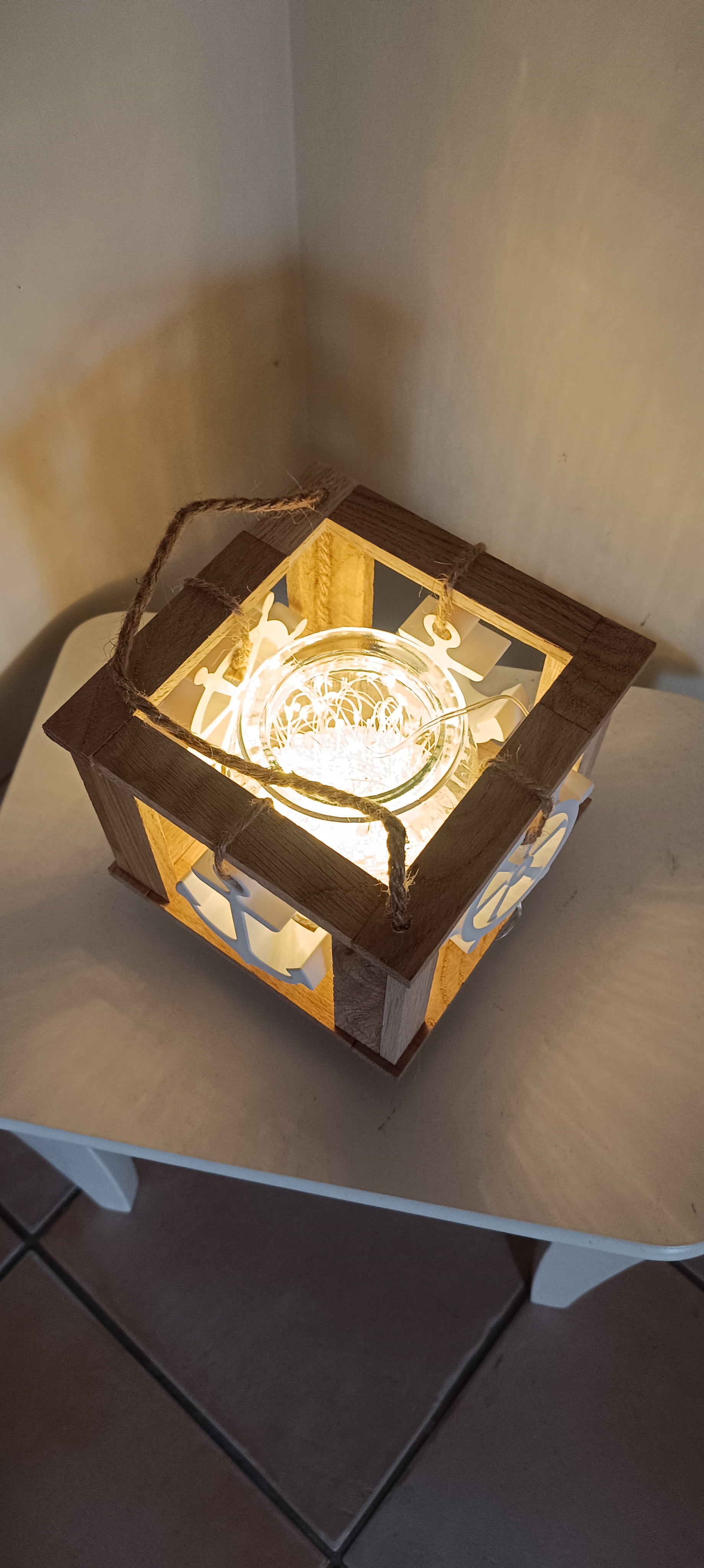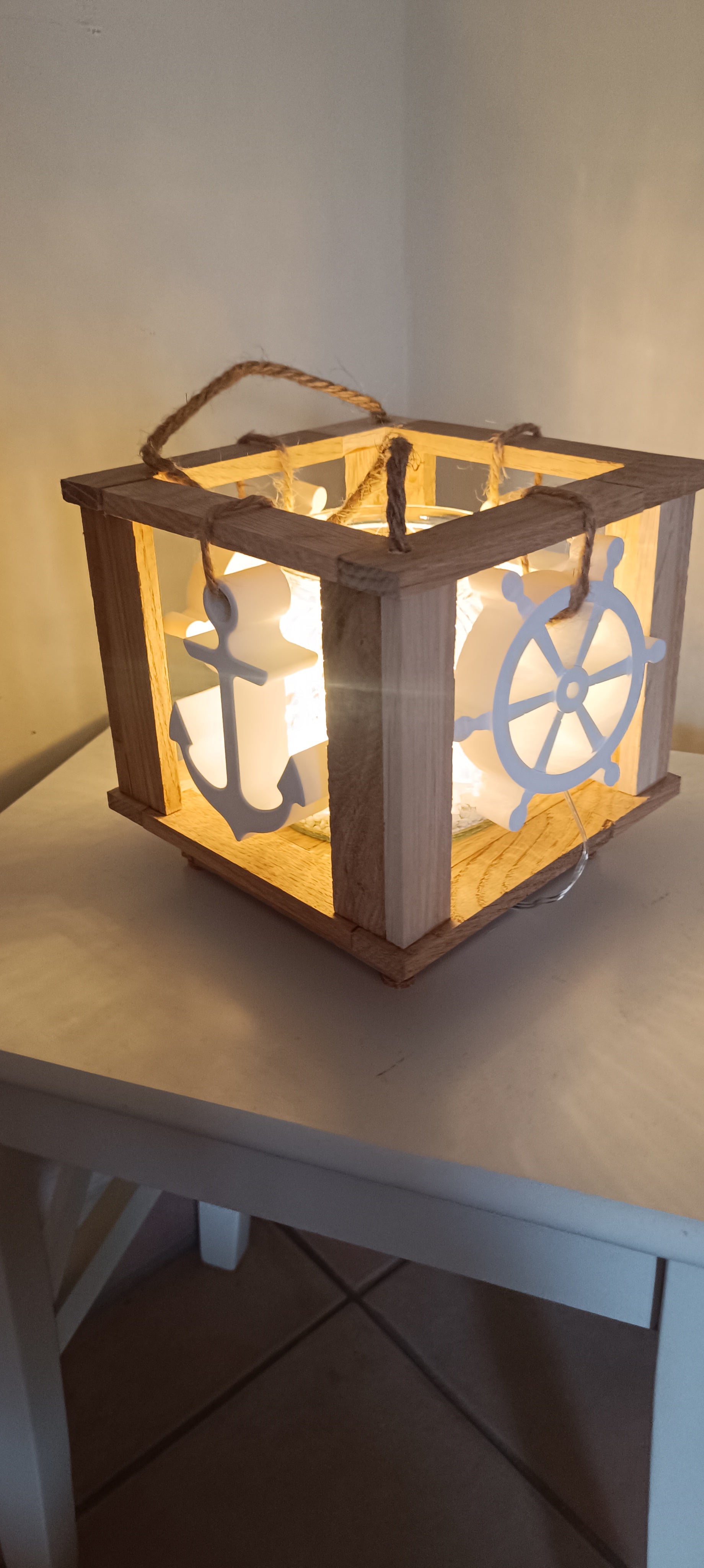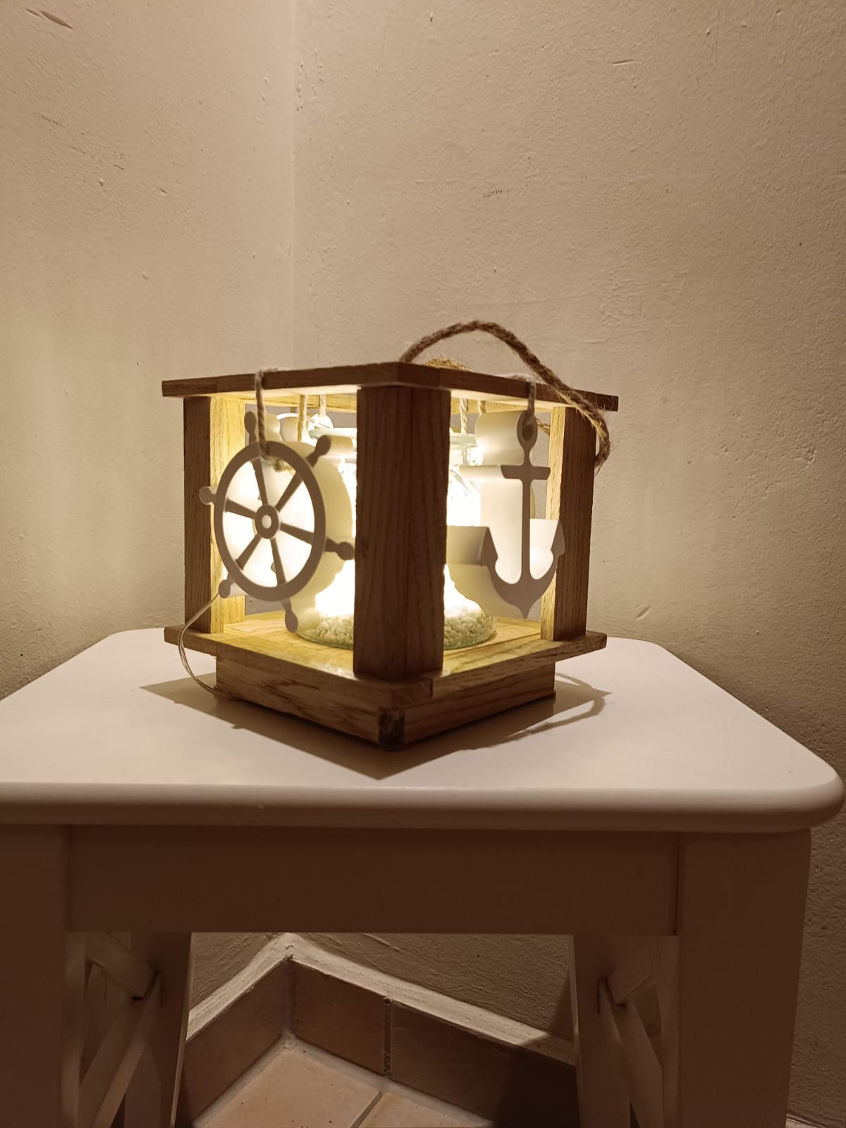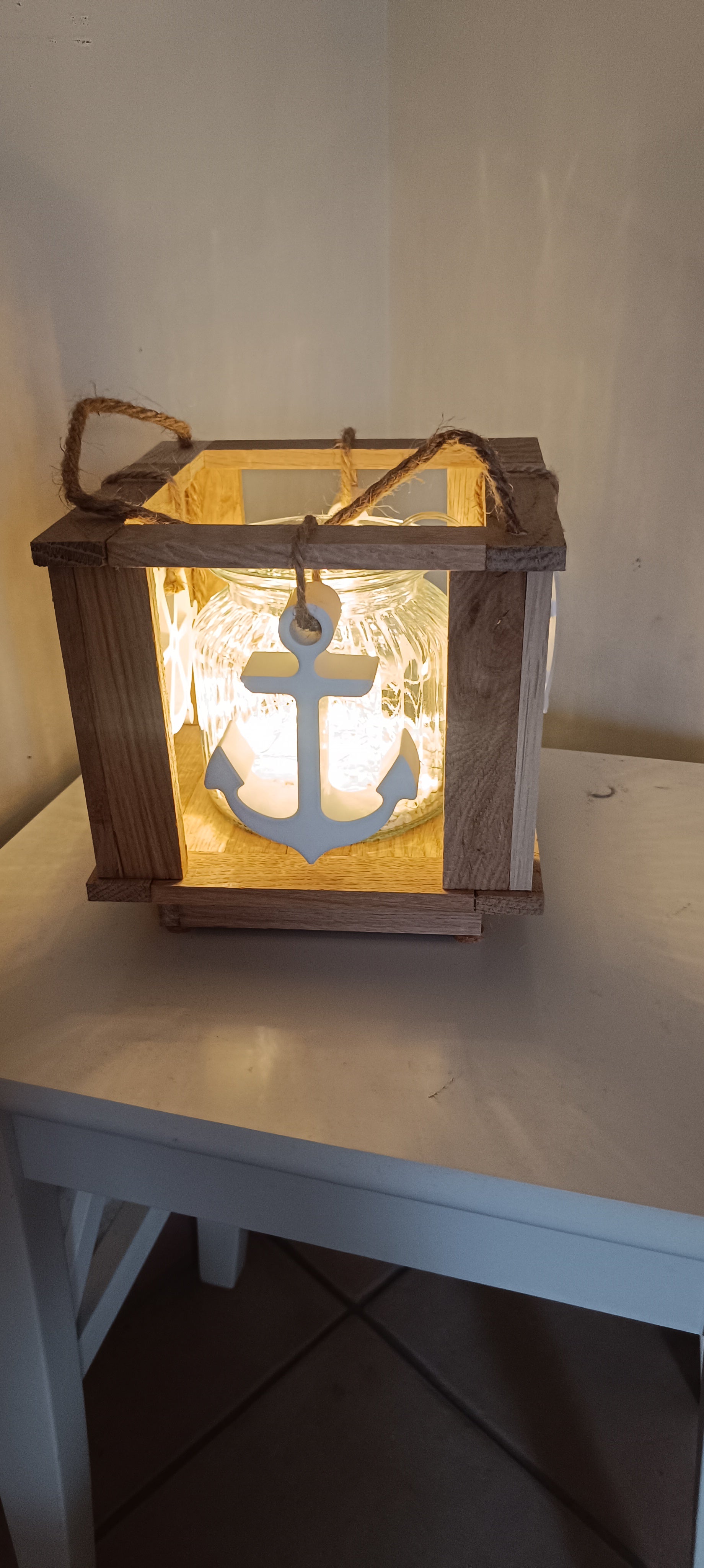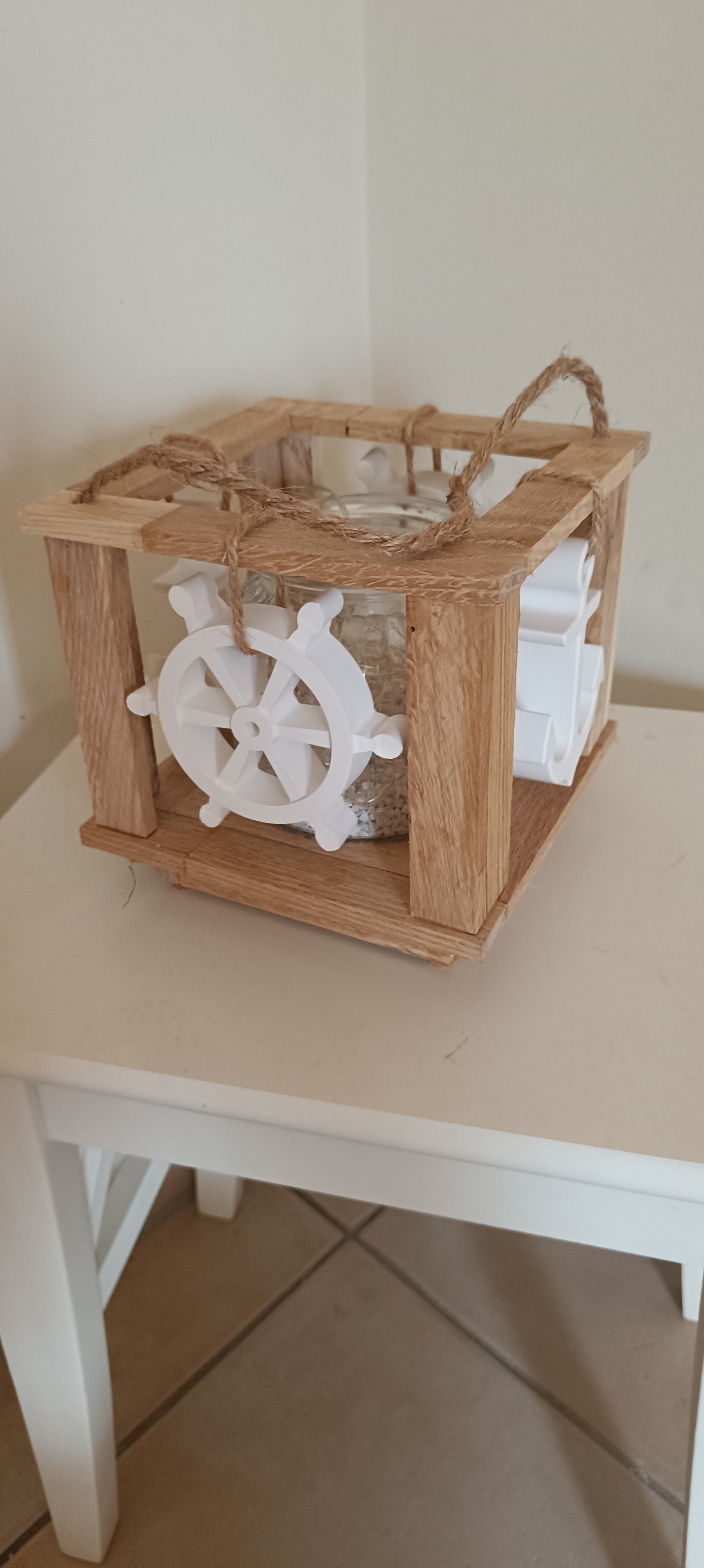 Willkommen an Bord! Die Laterne "Nordsee" bringt maritimes Flair in dein Zuhause. Das robuste Holzgehäuse wird von einem charmanten Anker und einem detaillierten Steuerrad aus Keramik-Gußmasse verziert – perfekt für alle, die das Meer lieben. Ob an der Decke aufgehängt oder auf dem Regal gestellt, diese vielseitige Laterne schafft sofort eine gemütliche, nautische Atmosphäre. Ein wunderschönes Accessoire für Küche, Wohnzimmer oder Schlafzimmer!