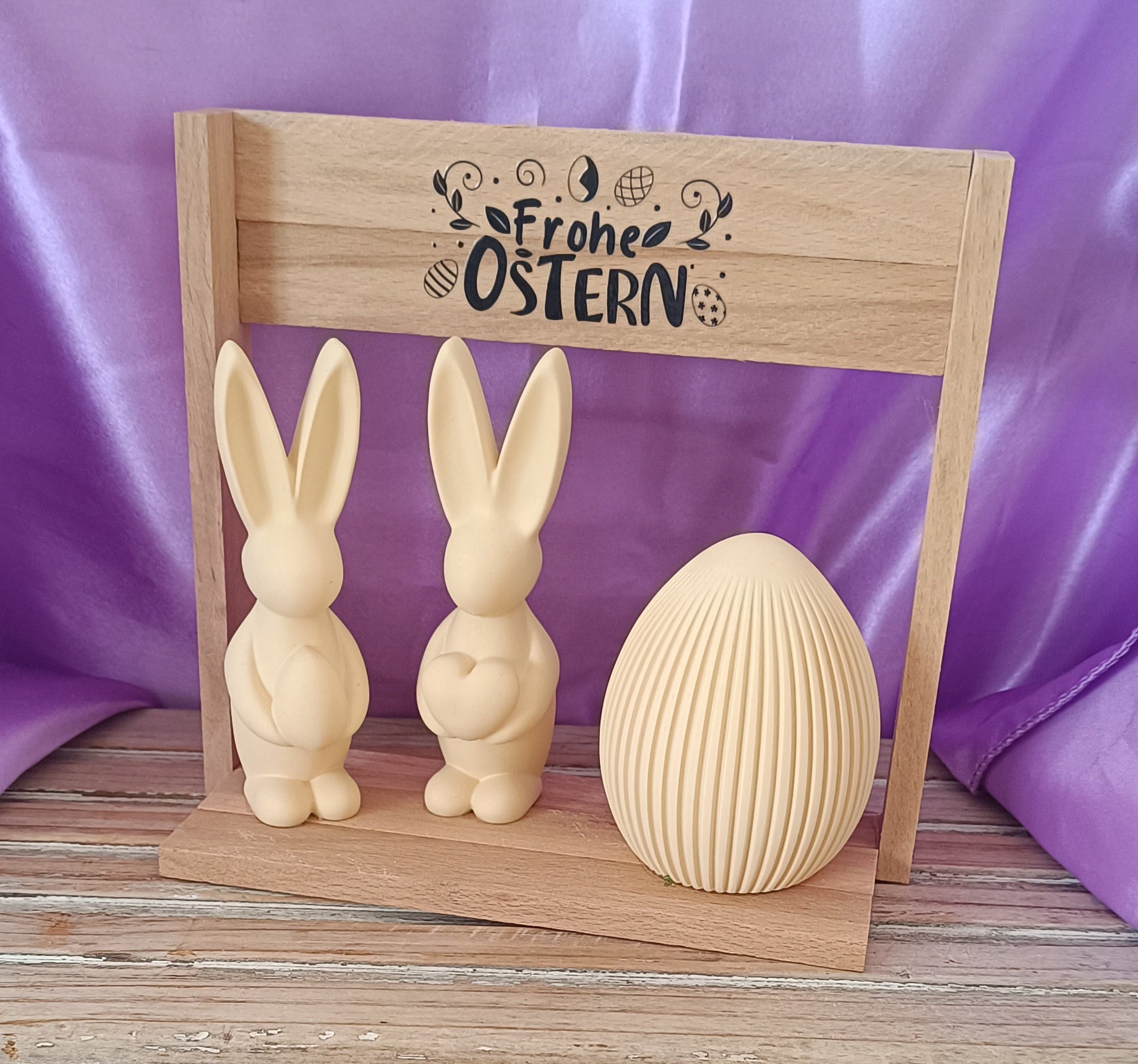 Zauberhafte Osterdeko mit Charakter! Zwei verspielt gestaltete Hasen und ein Ei thronen auf einem robusten Eichensockel – ein Statement-Piece für Tisch, Kommode oder Regal. Das natürliche Holz verleiht dem Set zeitlose Eleganz und Wärme. Perfekt, um Zuhause in Osterlaune zu versetzen. Hinweis: Die Beschriftung kann je nach Verfügbarkeit vom Bild abweichen. Ein liebevolles Accessoire für alle, die es klassisch und gemütlich mögen!