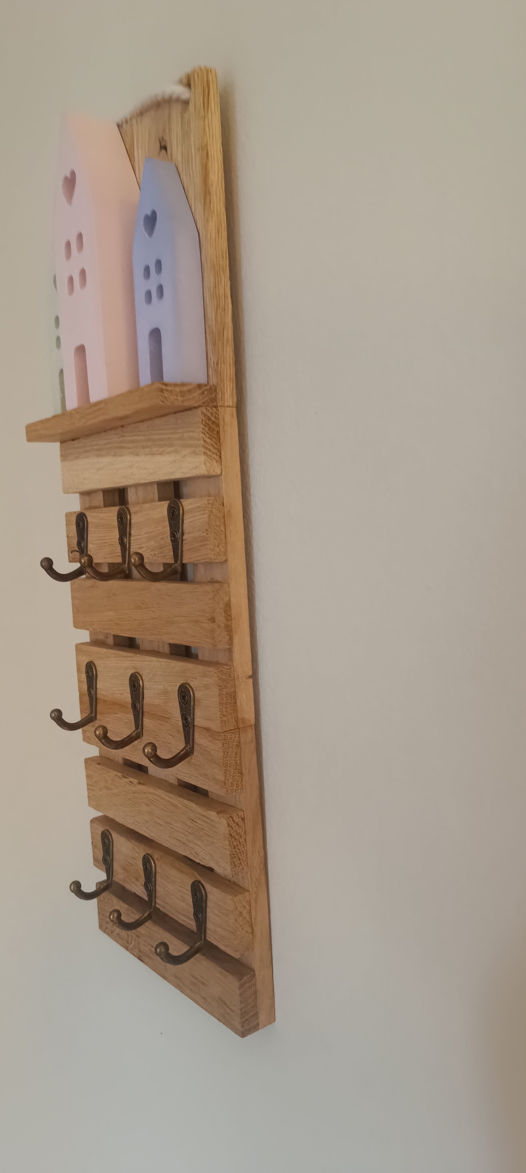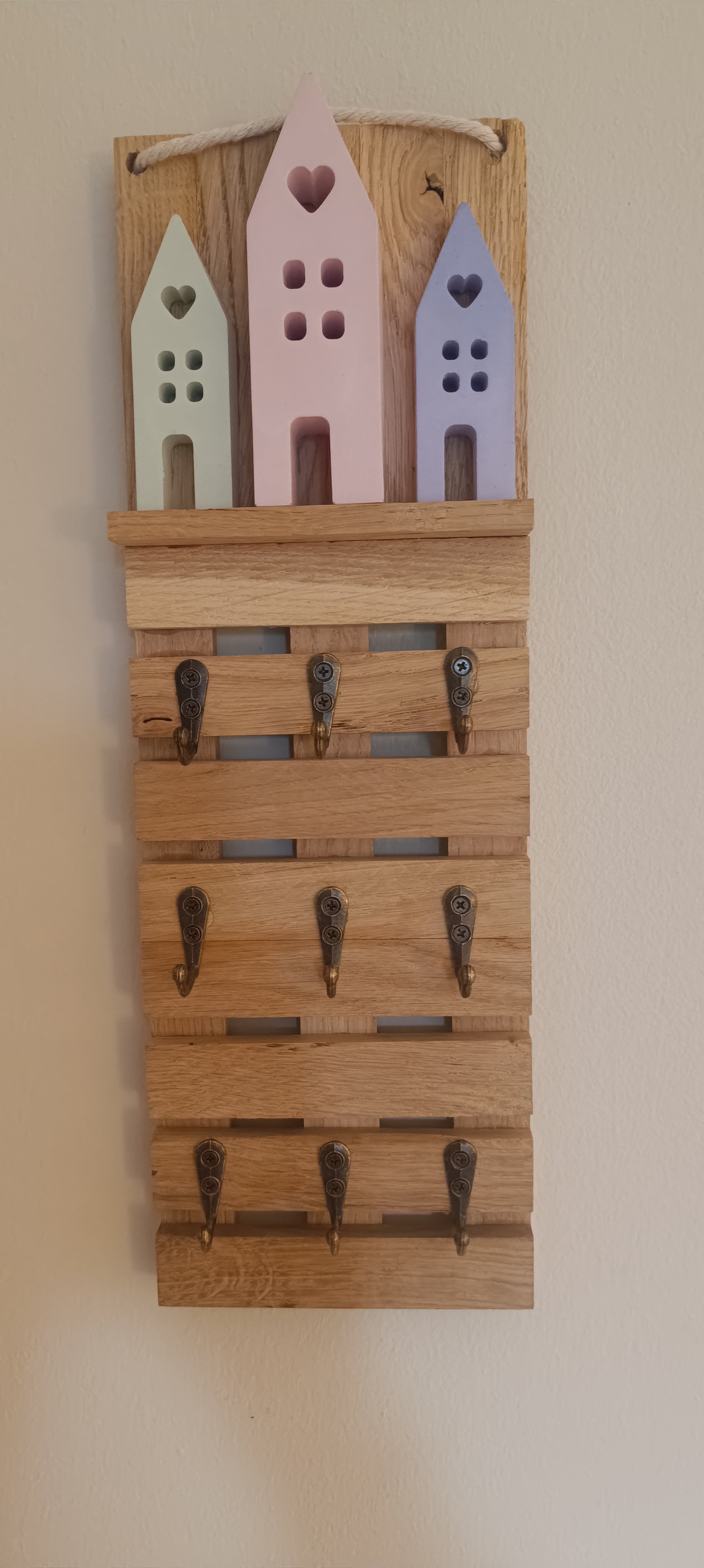 Das Schlüsselbrett „Häuser“ bringt Spaß und Ordnung in dein Zuhause. Mit robusten schwarzen Metallhaken hast du deine Schlüssel immer griffbereit, während das verspielte Design jedem Flur einen freundlichen Charme verleiht. Dank der kompakten Größe von 17 x 36 x 5 cm und der integrierten Wandaufhängung ist es schnell angebracht und sorgt jeden Tag für ein kleines Lächeln beim Hineingreifen. Perfekt, um Schlüsselchaos mit Stil zu verabschieden!