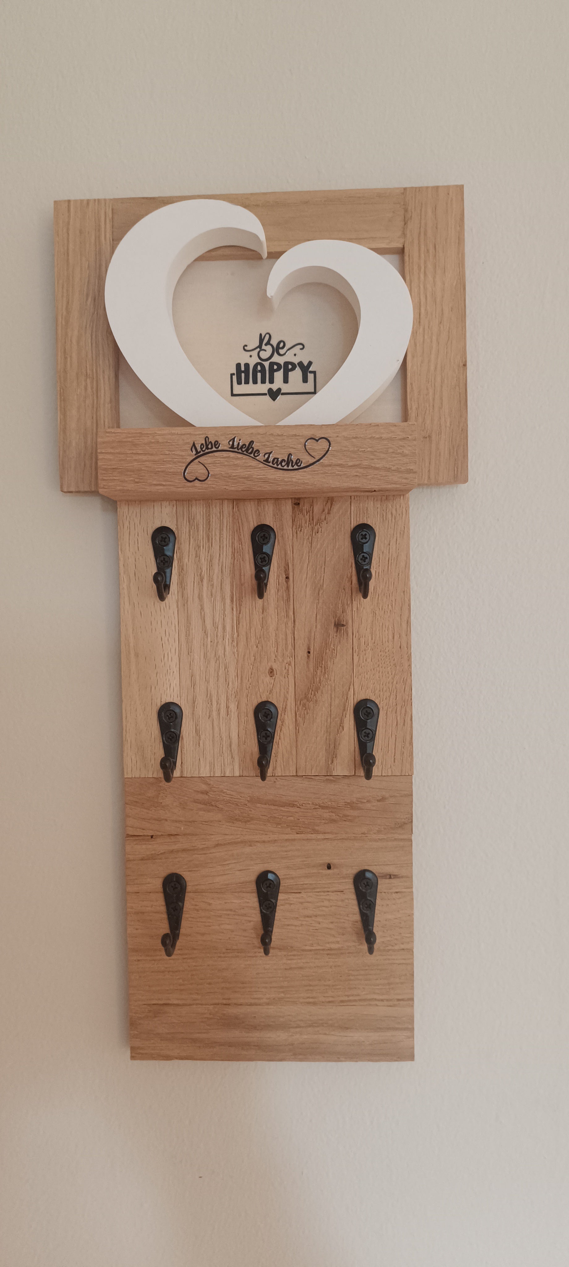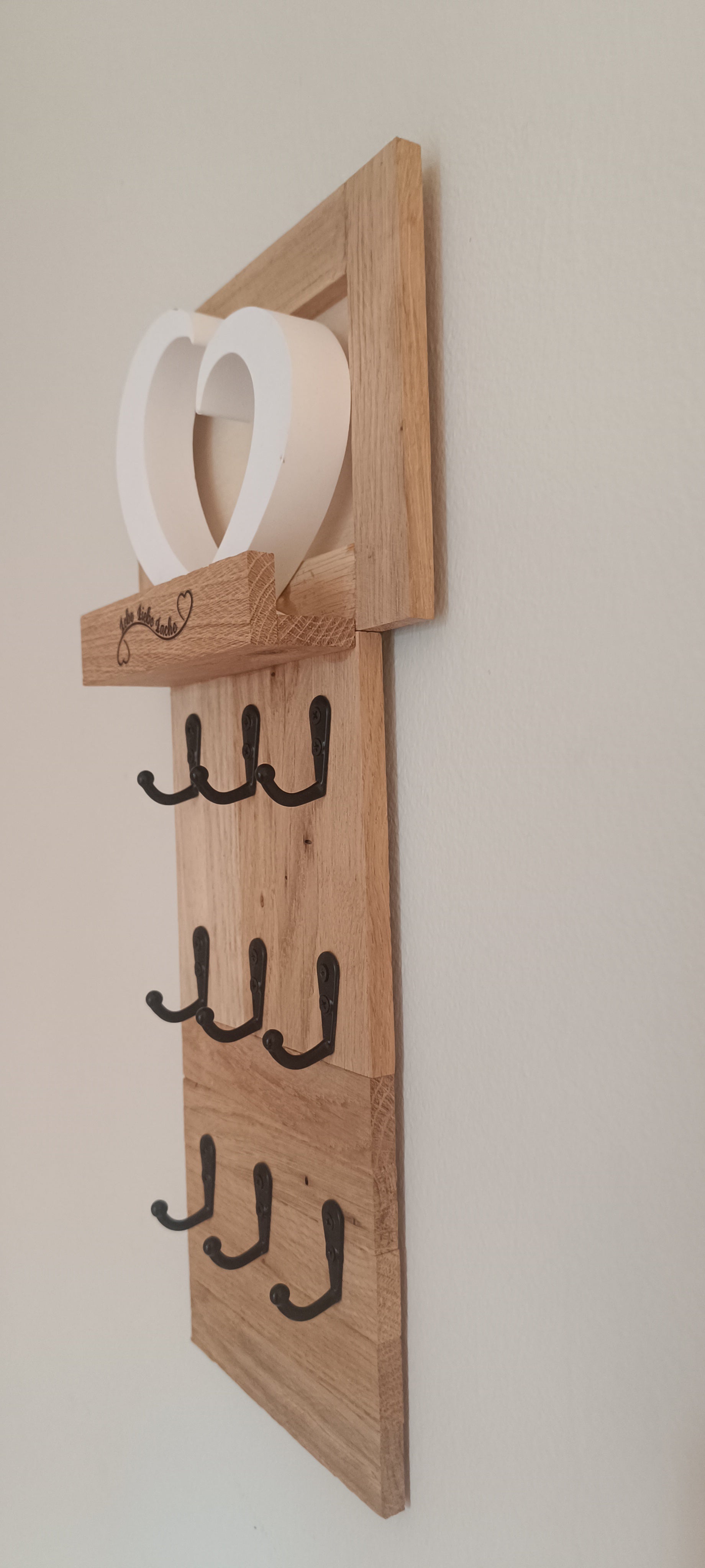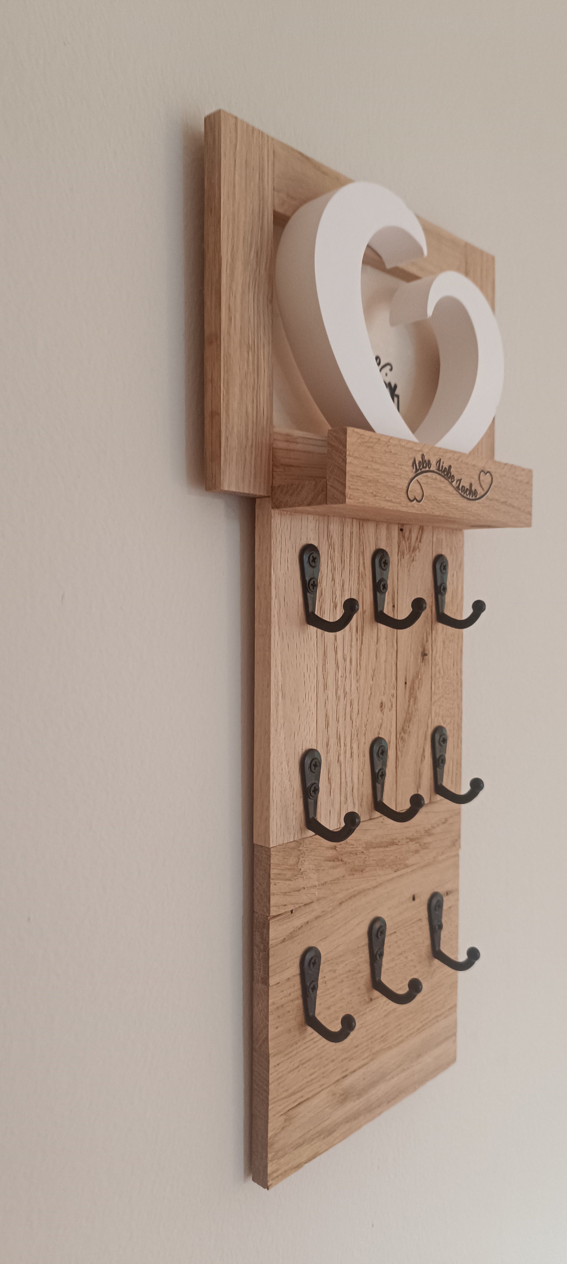 Dieses Schlüsselbrett „Herz“ bringt mit seinen schwarzen Metallhaken nicht nur Ordnung, sondern auch einen Hauch von Charme in dein Zuhause. Perfekt, um deine Schlüssel stilvoll und griffbereit aufzubewahren – so findest du sie immer mit einem Lächeln!