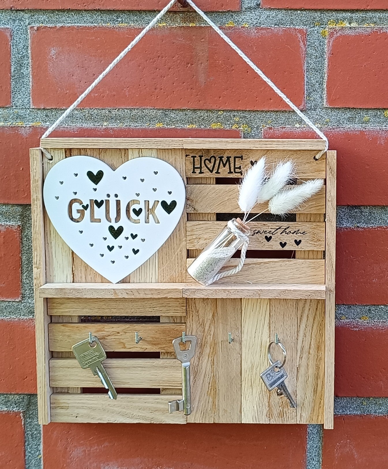 Dieses Schlüsselbrett ist nicht nur dekorativ, sondern auch echte Handarbeit! Mit diesem einzigartigen Stück haben Sie nicht nur einen praktischen Ort, um Ihre Schlüssel aufzubewahren, sondern auch ein wunderschönes und individuelles Dekorationsstück für Ihr Zuhause. Eine tolle Möglichkeit, Funktionalität und Stil zu kombinieren. (Nicht "einfach nur" ein Schlüsselbrett!).
