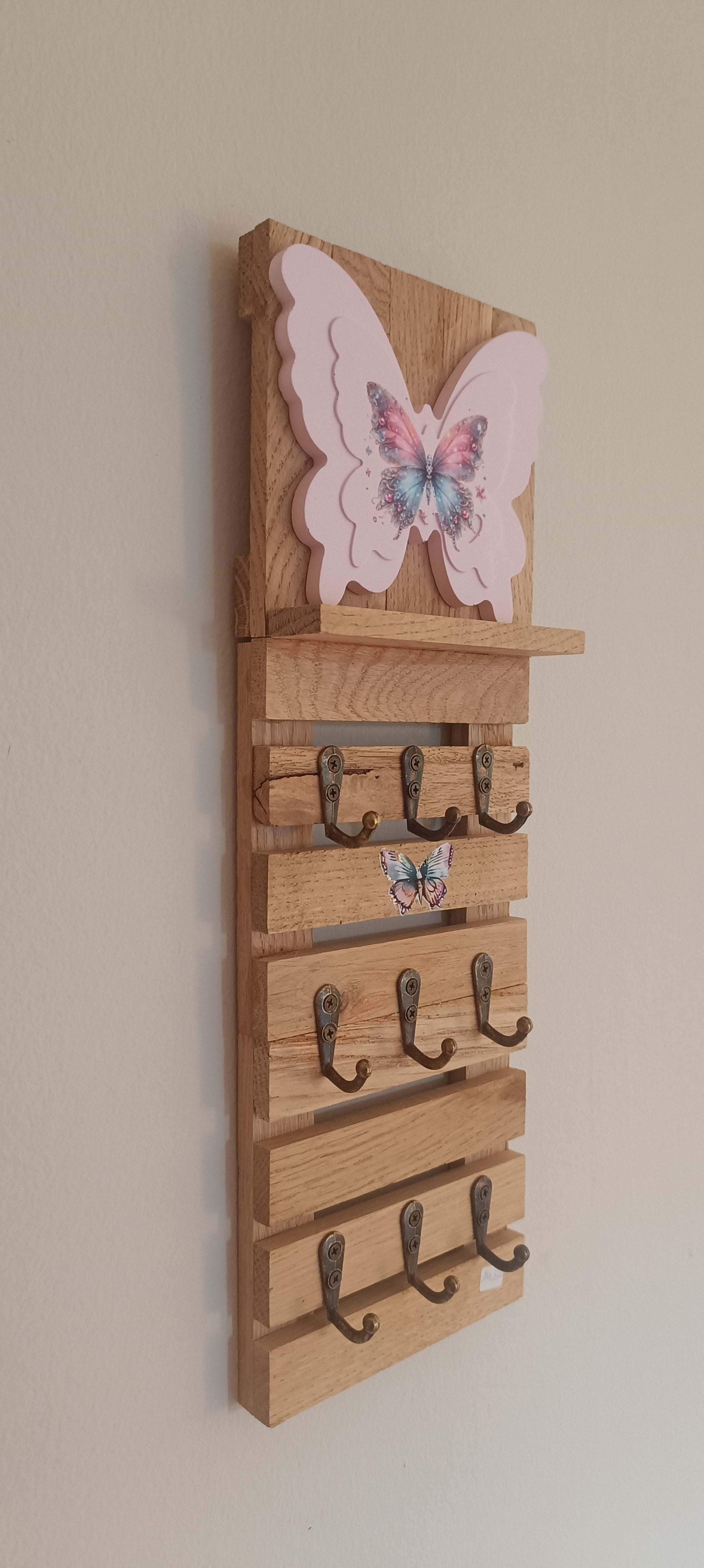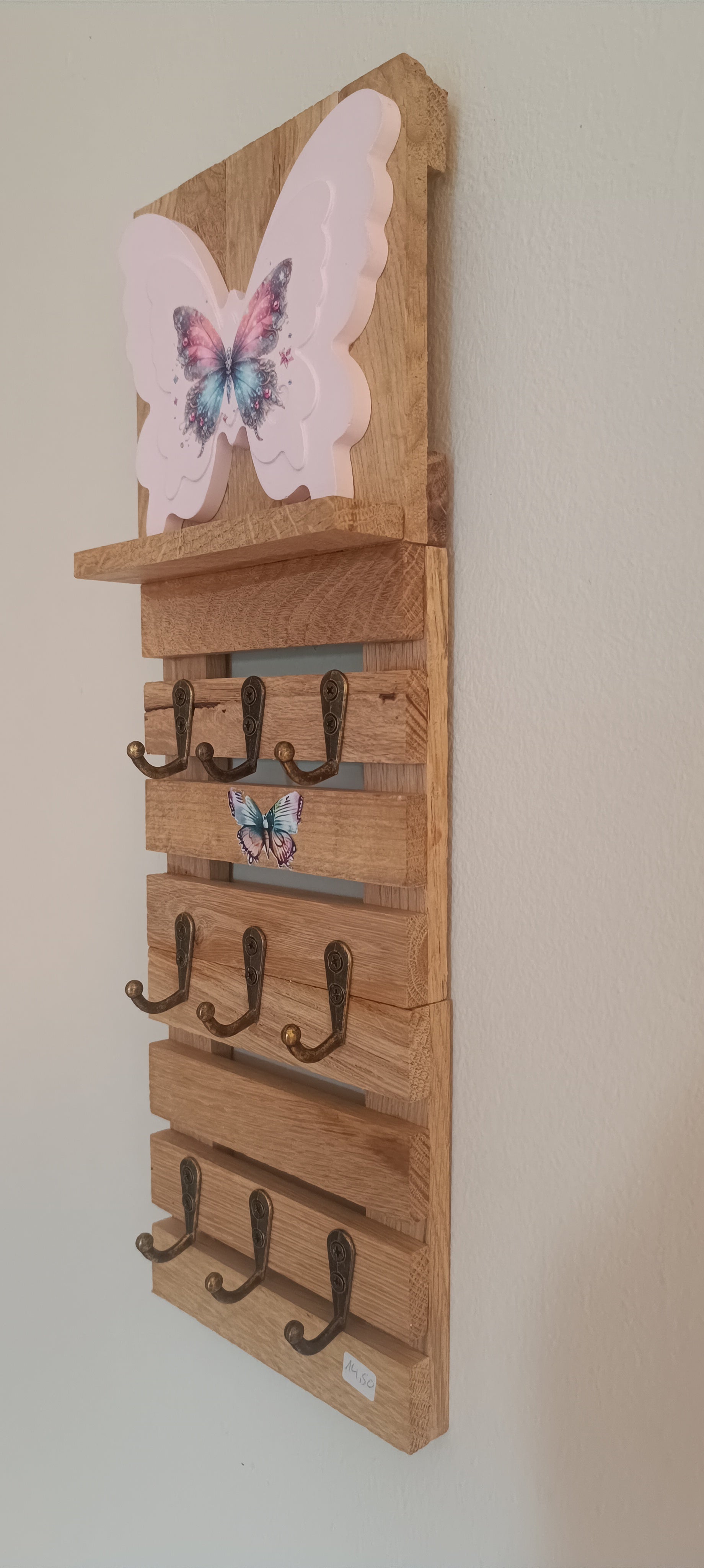 Das Schlüsselbrett „Schmetterling“ vereint praktische Ordnung mit verspieltem Flair. Die schwarzen Metallhaken halten deine Schlüssel stets griffbereit, während das charmante Design einen freundlichen Akzent in deinem Zuhause setzt. Inklusive Wandaufhängung, mit kompakten Maßen von 17 x 36 x 5 cm – so findest du deine Schlüssel ab sofort immer mit einem Lächeln!