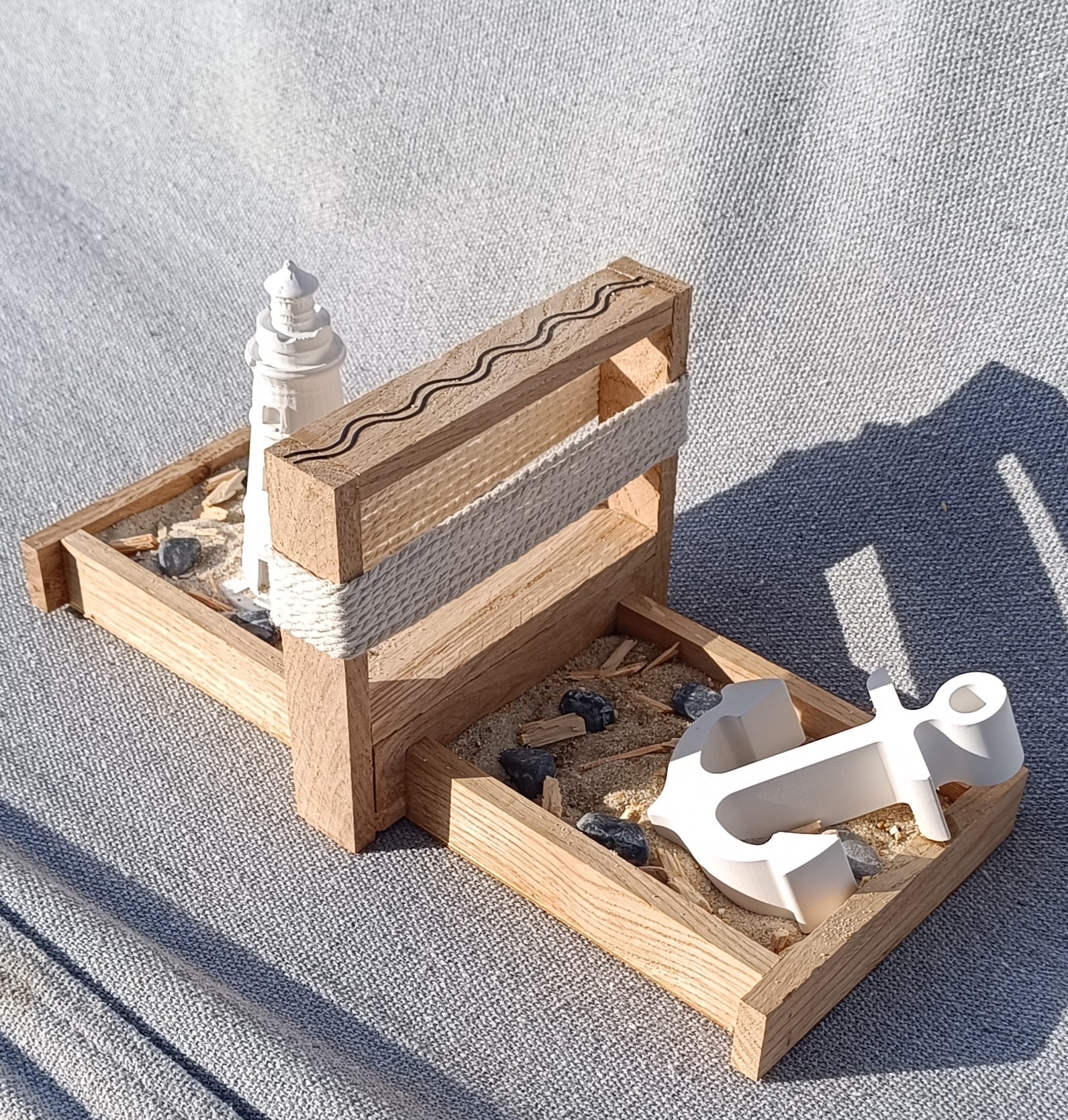 Für echte Seefahrer! "Leuchtturm am Strand", selbst hergestellt aus Strandgut und echtem Sand, mit Leuchtturm und Anker. Schafft eine maritime Atmosphäre und bietet stundenlangen Spaß am Strand. Keine Möwen inklusive! :-)