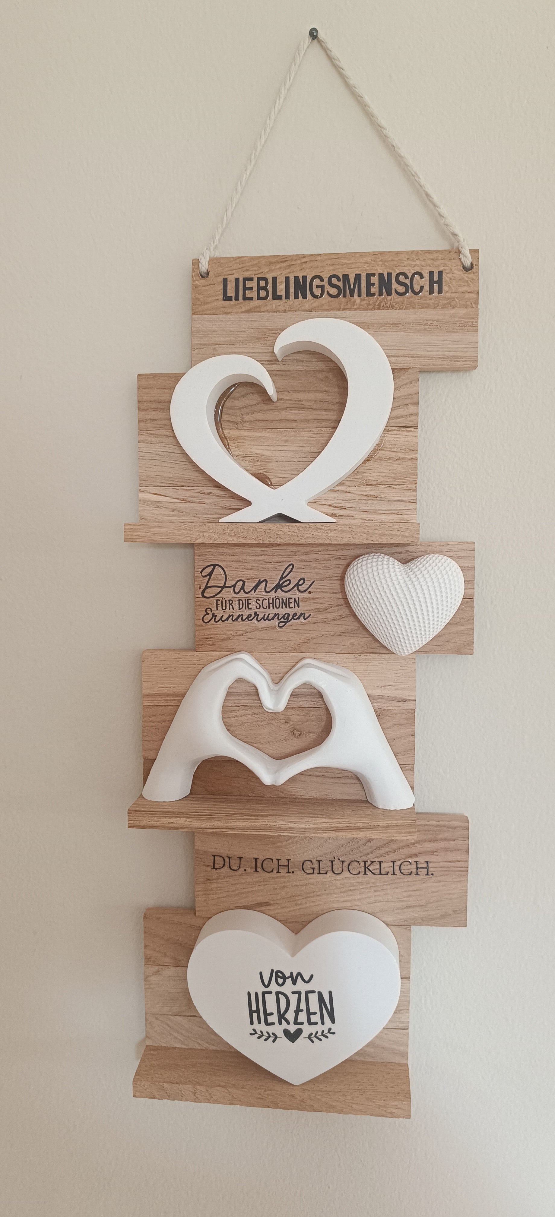 Verleihen Sie Ihren Wänden einen Hauch von Fröhlichkeit mit unserer Wanddekoration "Herzflut"! Diese verspielte Kombination aus natürlichem Holz und weißen oder farbenfrohen Keramikelementen bringt sofort gute Laune in jeden Raum. Ein dekoratives Highlight, das Herzen höher schlagen lässt und Ihrem Zuhause eine persönliche Note verleiht.