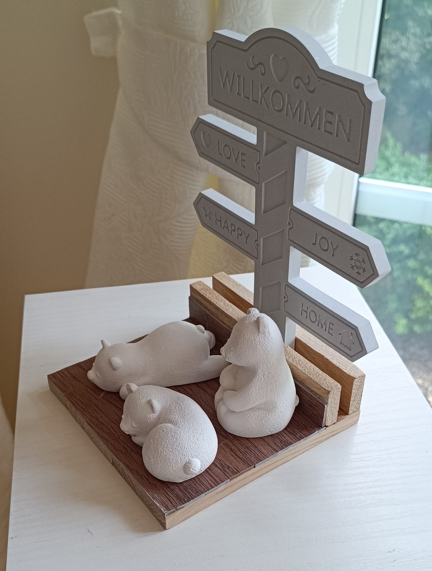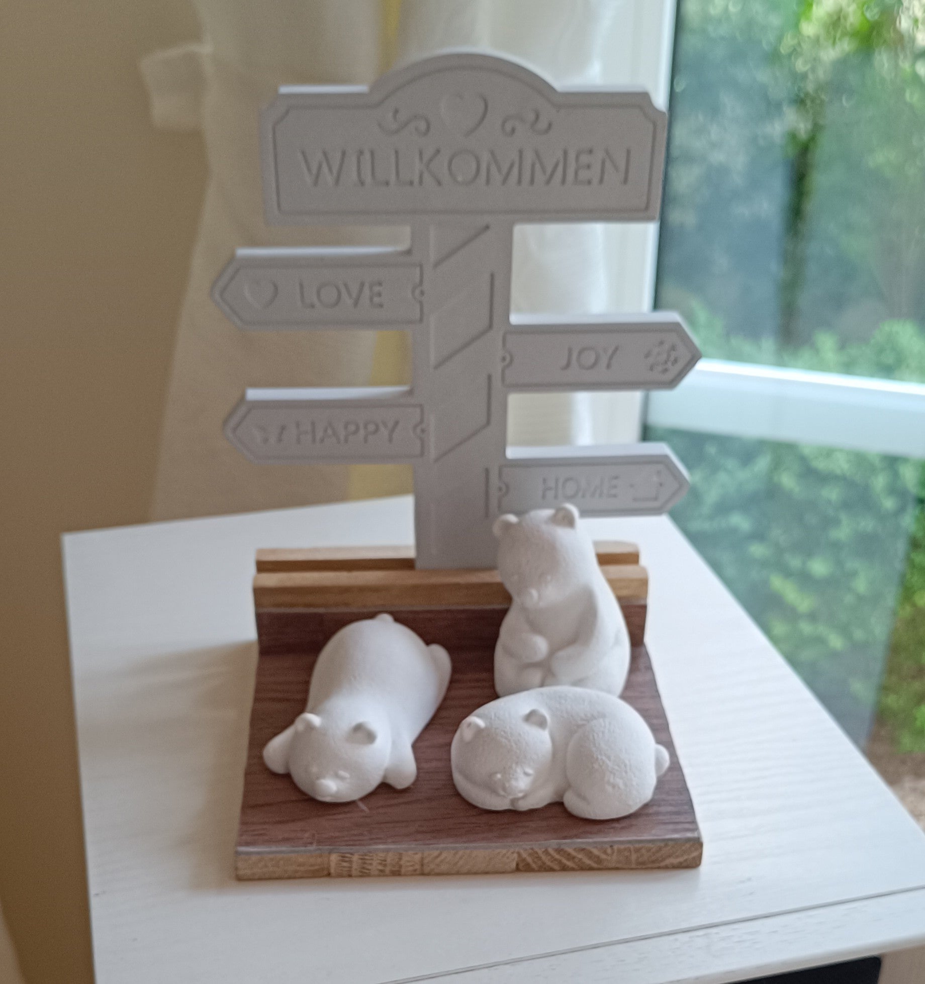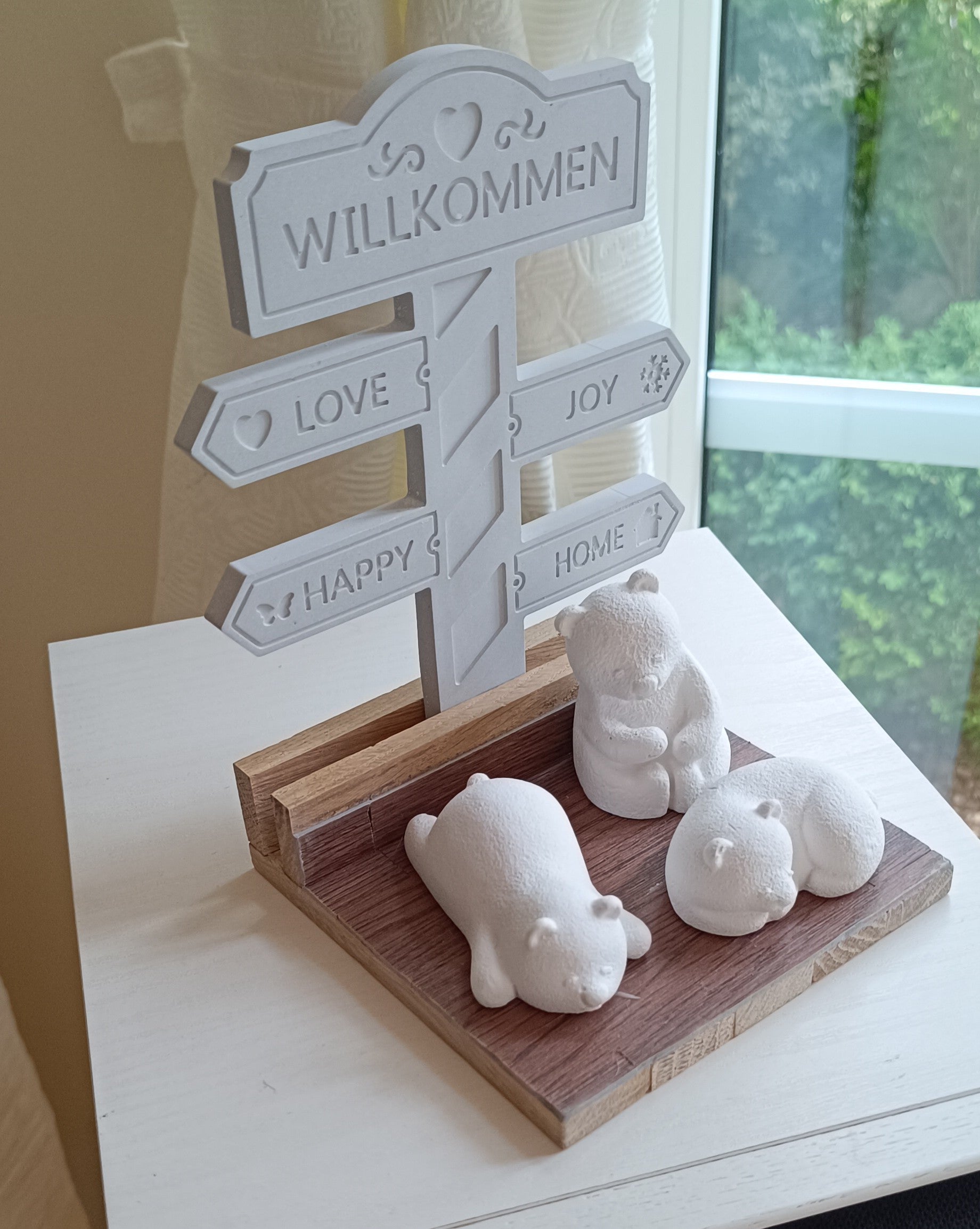 Begrüßen Sie Ihre Gäste mit unserem charmanten Wegweiser mit drei entspannten Bären. Diese fröhlichen Gesellen sorgen für eine spielerische Atmosphäre und weisen Ihnen den Weg mit gemütlichem Charme. Perfekt, um jedem Raum eine freundliche und lockere Stimmung zu verleihen.