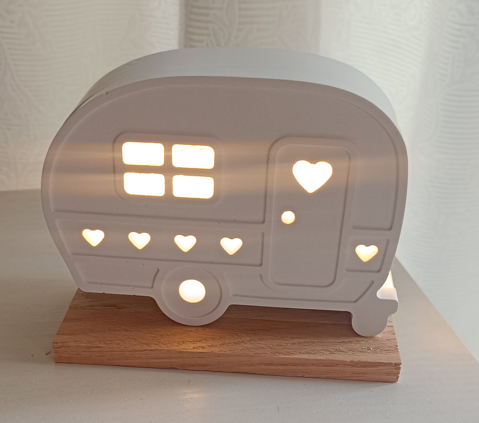 Unser charmanter Wohnwagen bringt Abenteuer-Feeling in dein Zuhause! Erhältlich in vier unterschiedlichen Variationen, besticht jedes Modell mit stimmungsvoller LED-Beleuchtung, die gemütliche Abende schafft. Der robuste Holzsockel verleiht dem Deko-Stück natürliche Eleganz und Stabilität. Perfekt für Camping-Fans und Liebhaber von Vintage-Charme – ein verspieltes Accessoire, das Wanderlust in jeden Raum bringt.