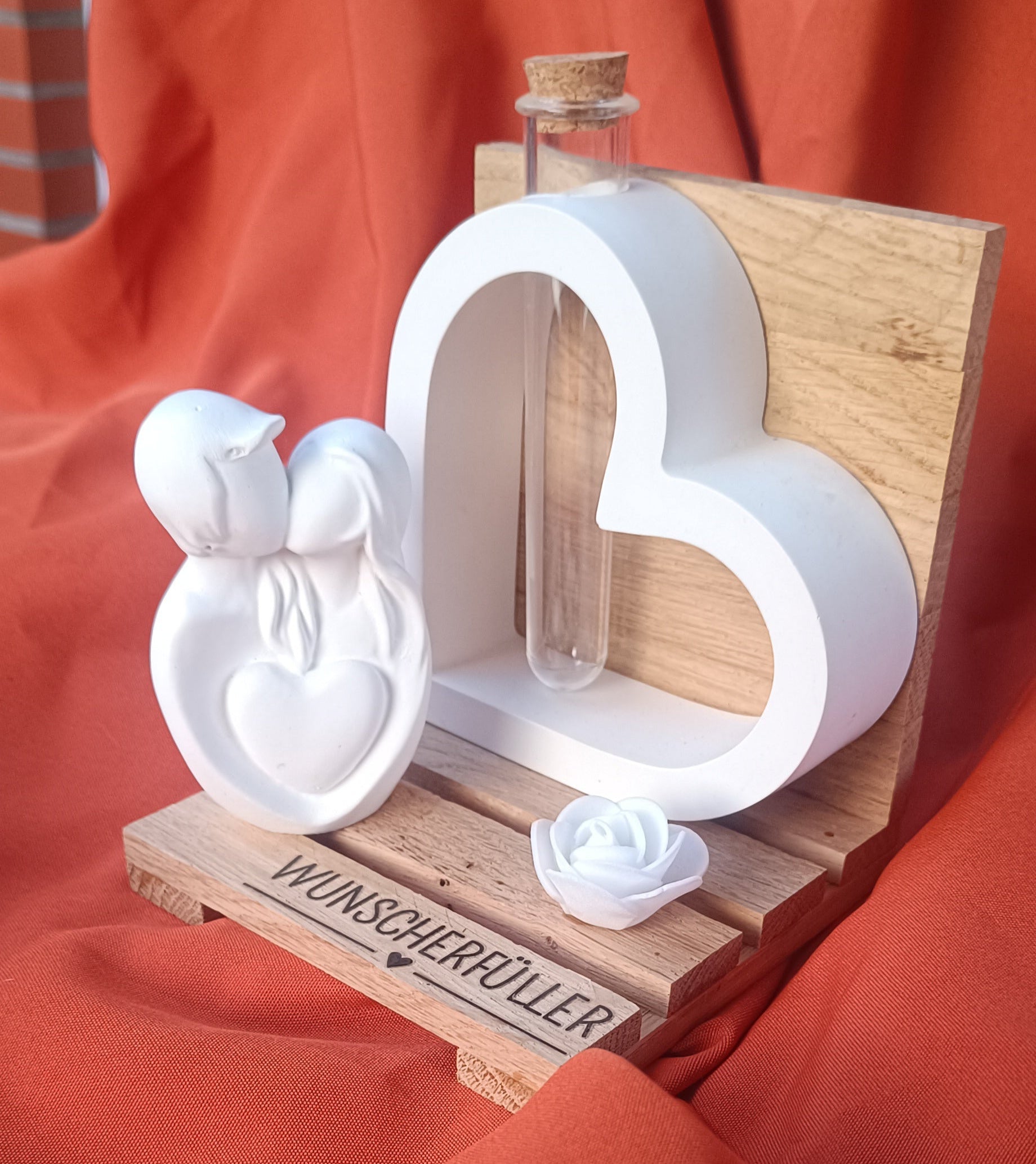 Verwandle dein Geldgeschenk in etwas ganz Besonderes mit dem Wunscherfüller "Herzpärchen"! Das liebevoll gestaltete Herz hält ein kleines Glasröhrchen bereit, in dem dein Geld sicher und stilvoll Platz findet. So wird jedes Geschenk nicht nur praktisch, sondern auch zum süßen Symbol für Glück und Liebe. Ideal zum Verschenken und Spaßhaben!