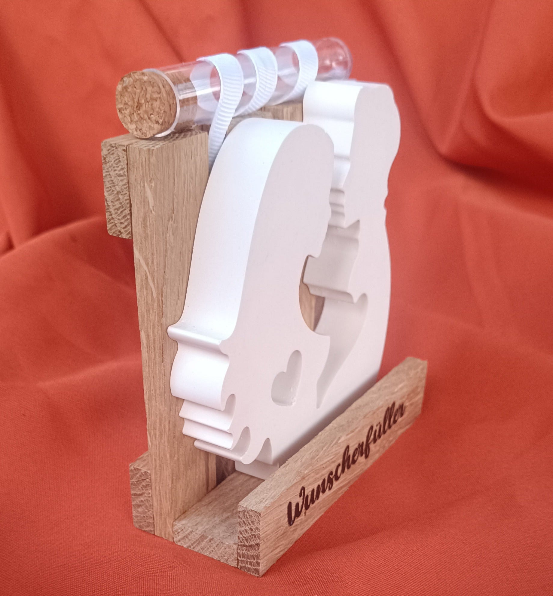 Verwandle dein Geldgeschenk oder Gutschein in ein zauberhaftes Erlebnis mit unserem Wunscherfüller „Pärchen“. Die Glasröhrchen schützen deinen Schatz stilvoll und geben deinem Präsent das gewisse Extra. Perfekt, um Wünsche voller Charme und Humor zu überreichen!